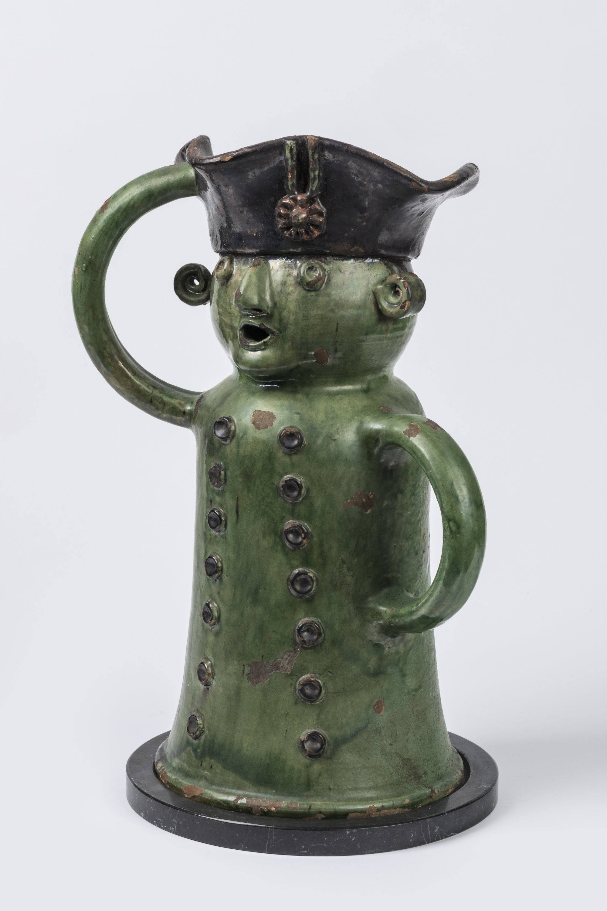 Si les épis de faîtage ont vocation à protéger "le poinçon saillant de la toiture", ils ont aussi une vocation ornementale, voire ostentatoire, passant souvent au-dessus de toute intention pratique. Notre épi se rattache au type figuratif généralement destiné aux maisons d'habitation, quand bien même son iconographie est militaire. En effet, ces personnages coiffés de bicornes ou tricornes et vêtus de redingote représentent des soldats de l'Ancien Régime faisant le salut. Ce type se retrouve principalement dans la région champenoise, mais sont aussi référencés en Mayenne, Saintonge et Tarn-et-Garonne.