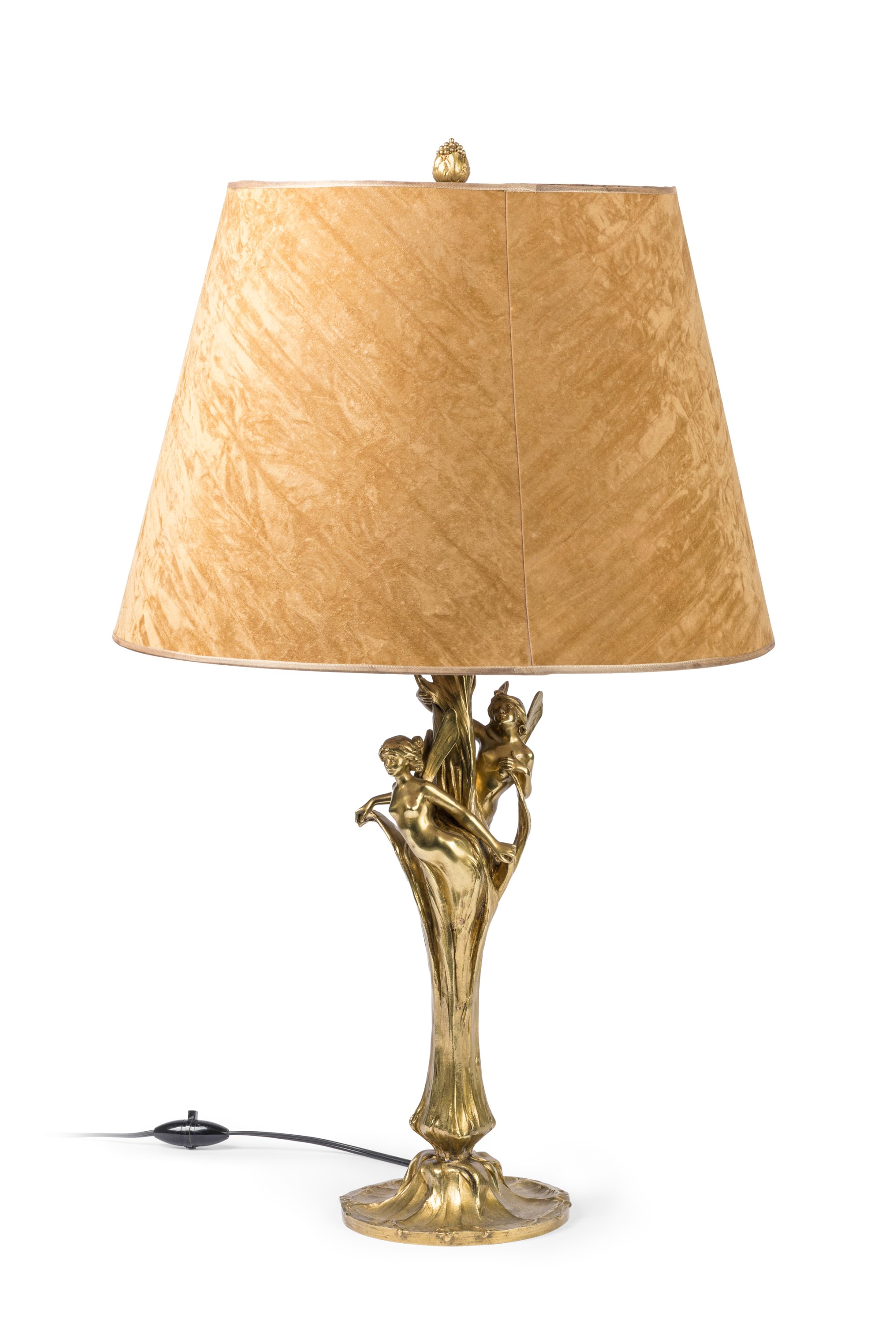 A fairy-decorated gilted bronze lamp. Art Nouveau Period.