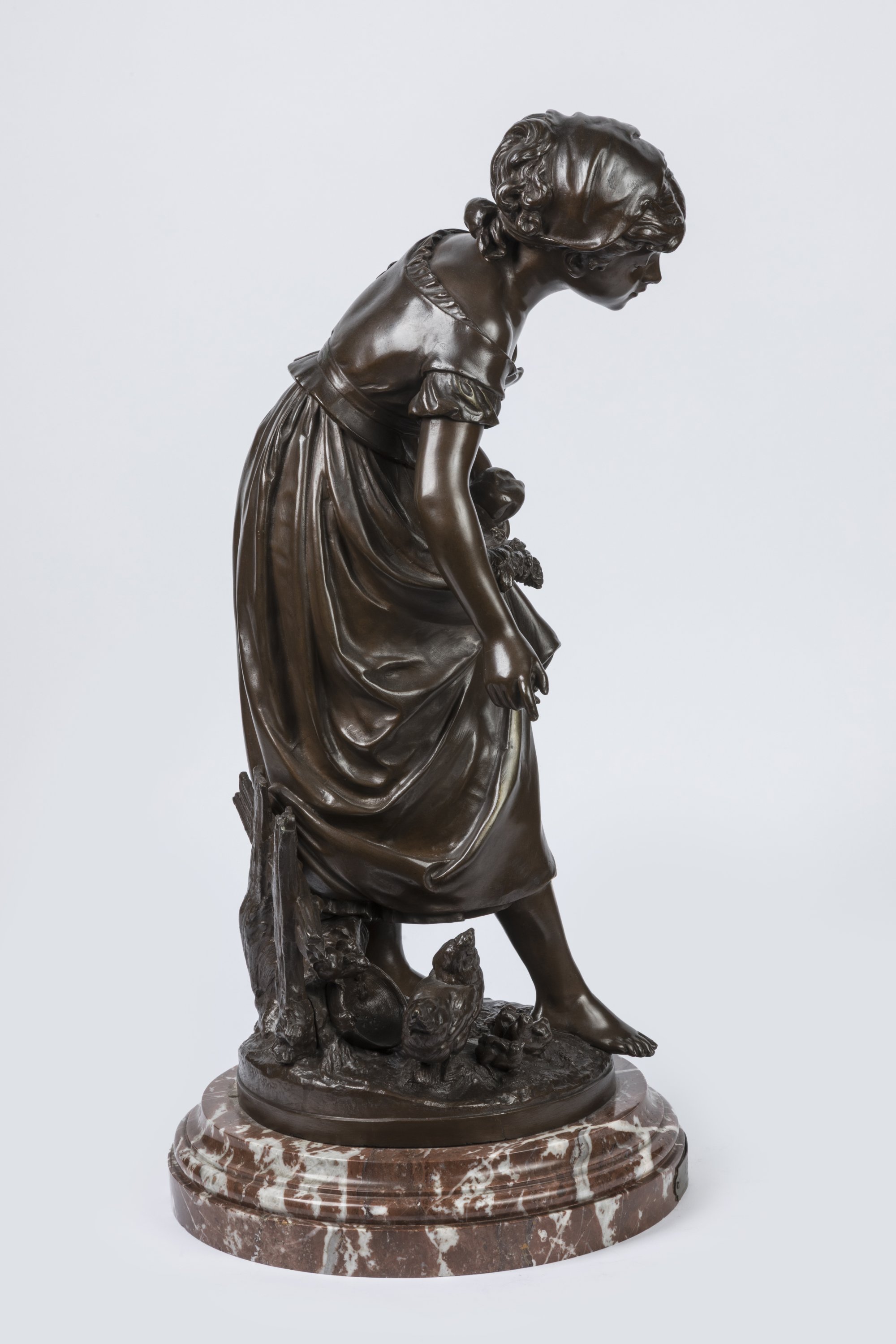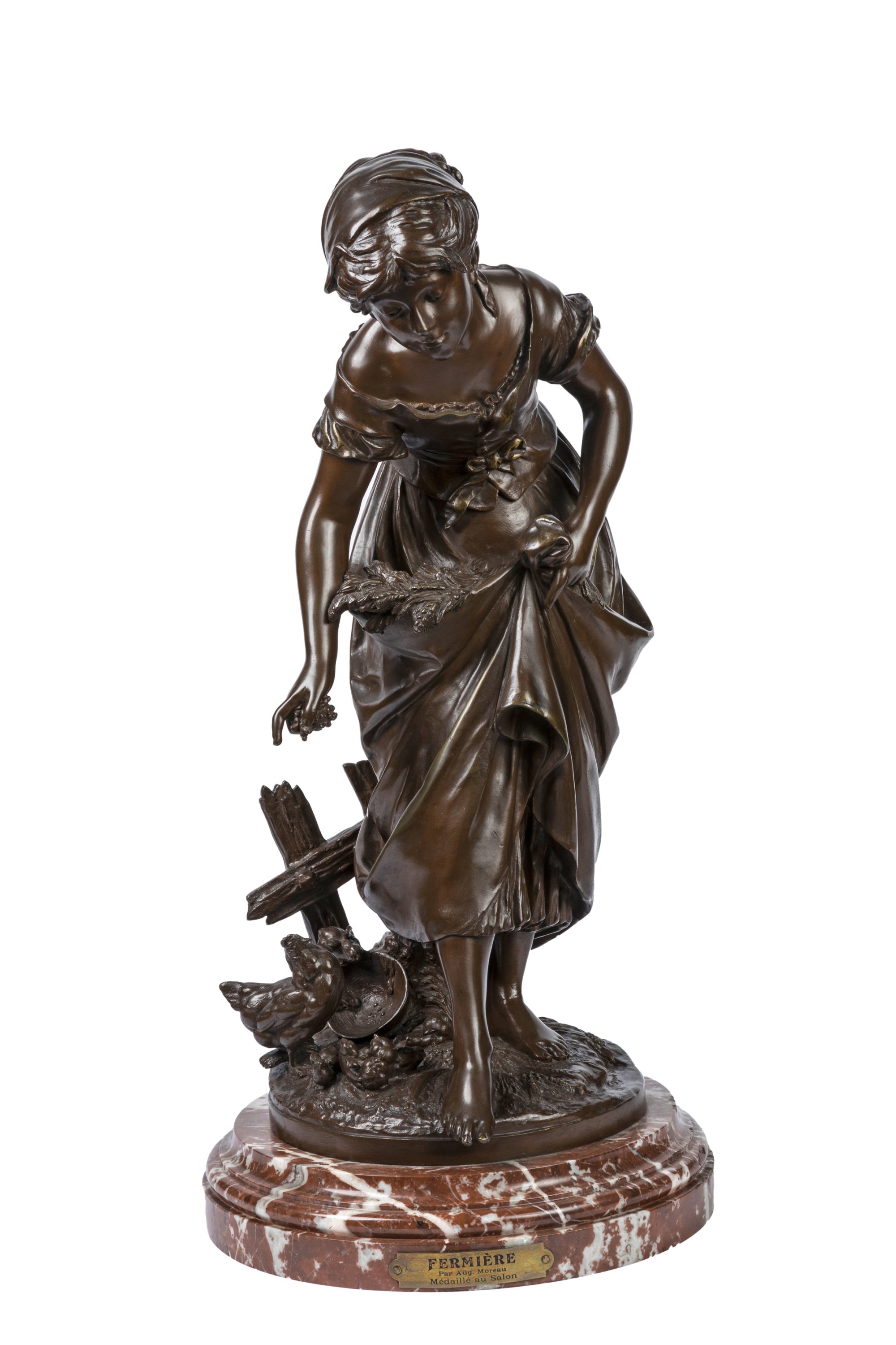 Sur un socle en marbre rouge avec un cartouche en cuivre "Fermière / par Aug. Moreau / Médaillé au Salon". Haut. totale 67 cm.