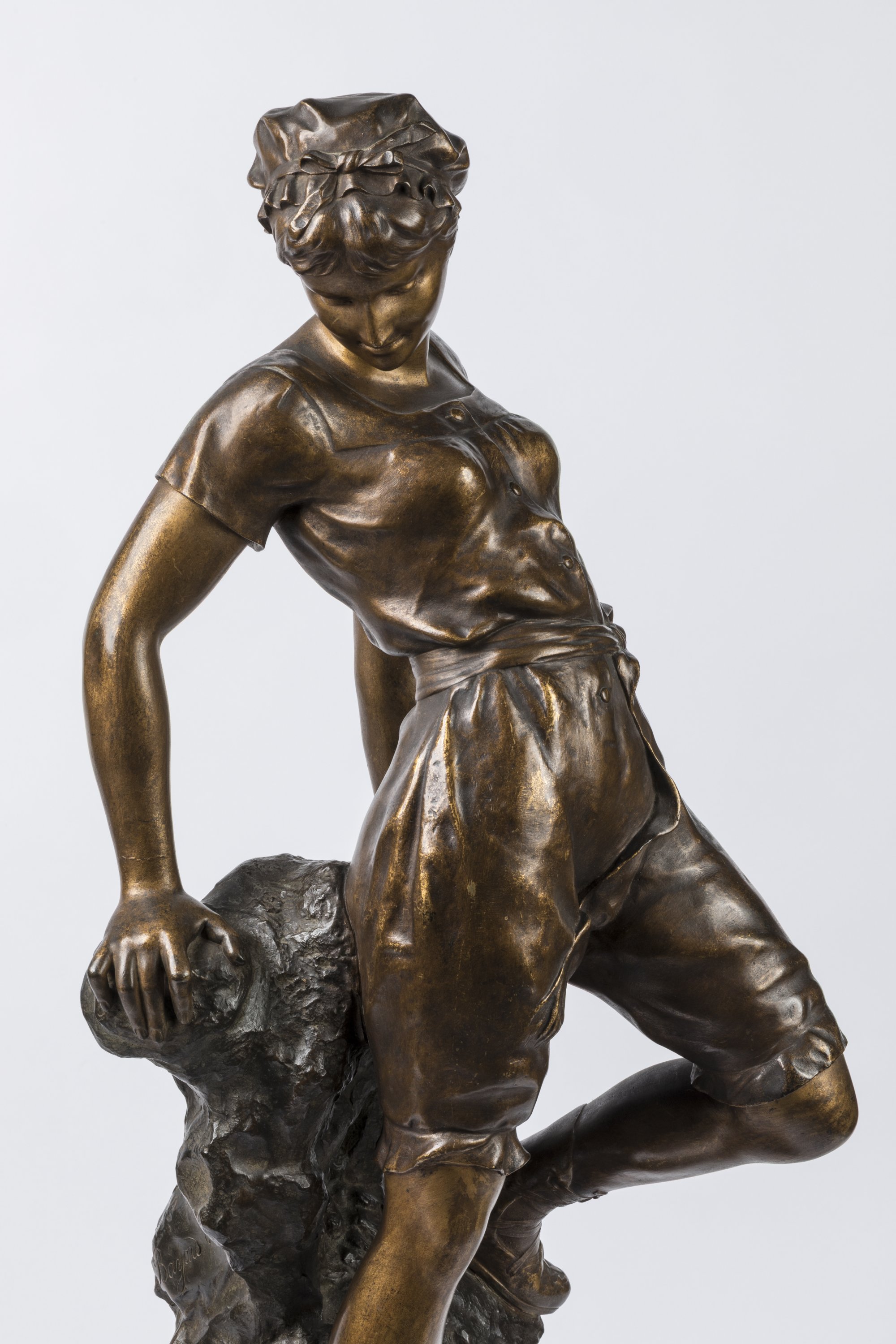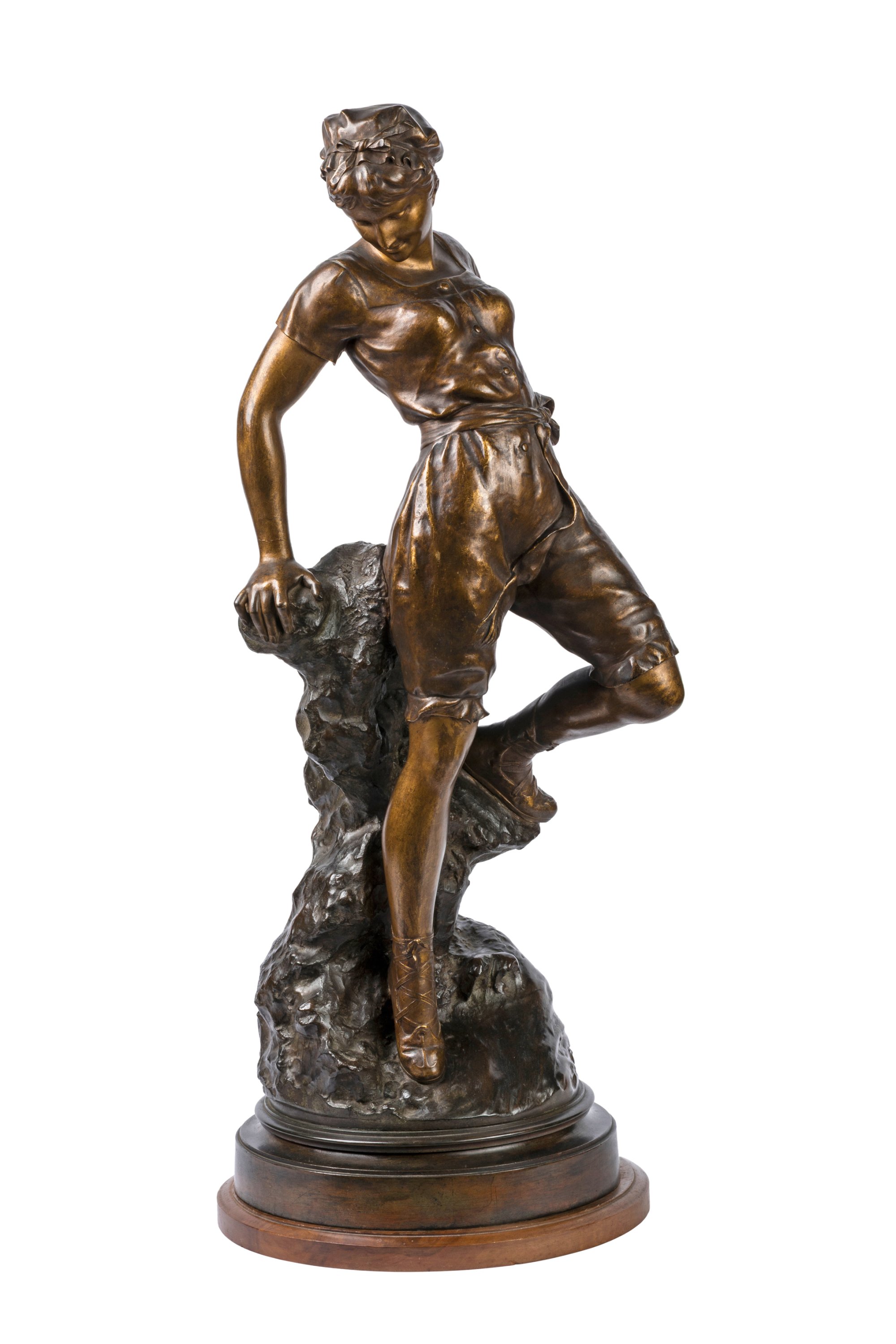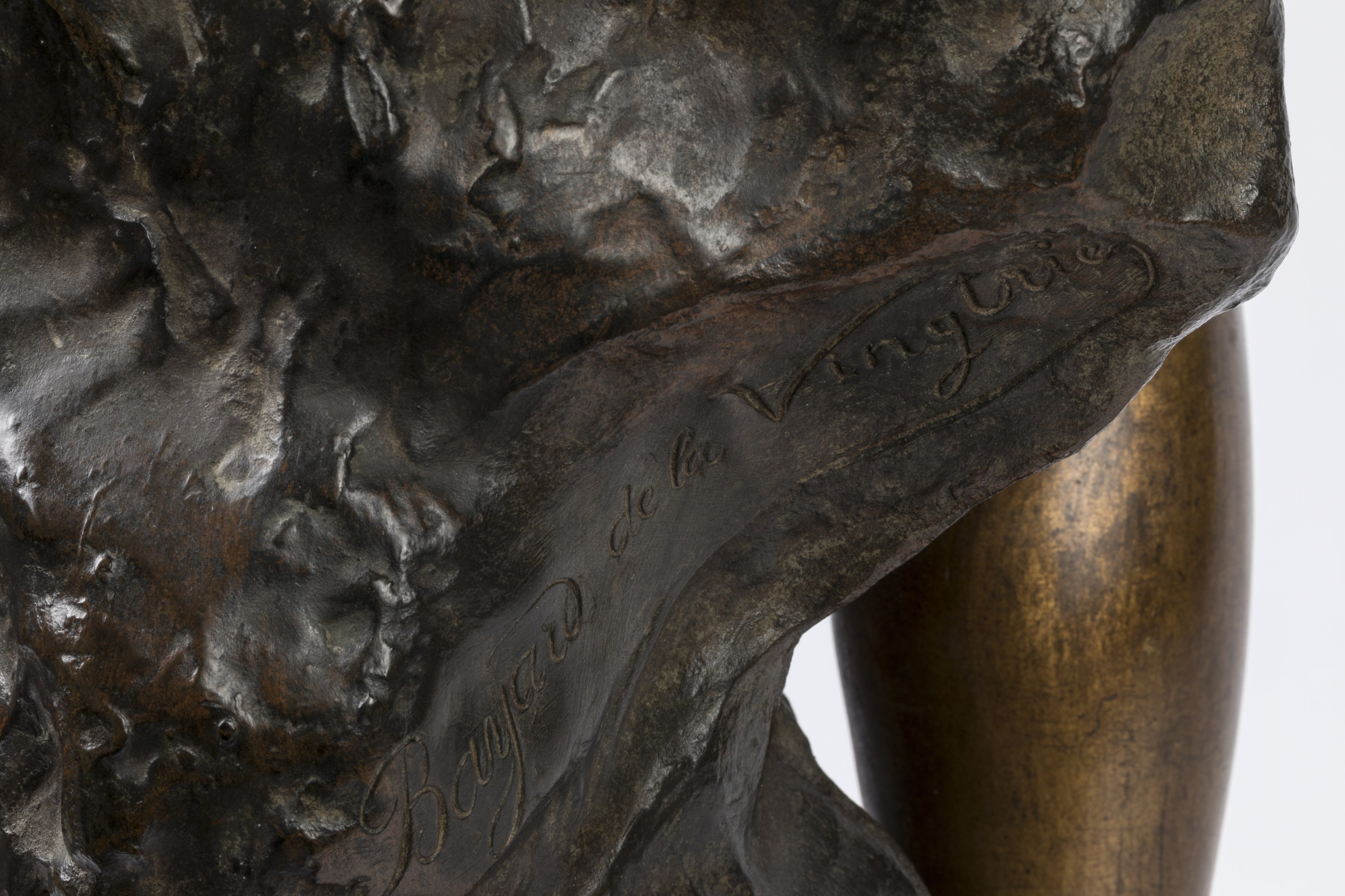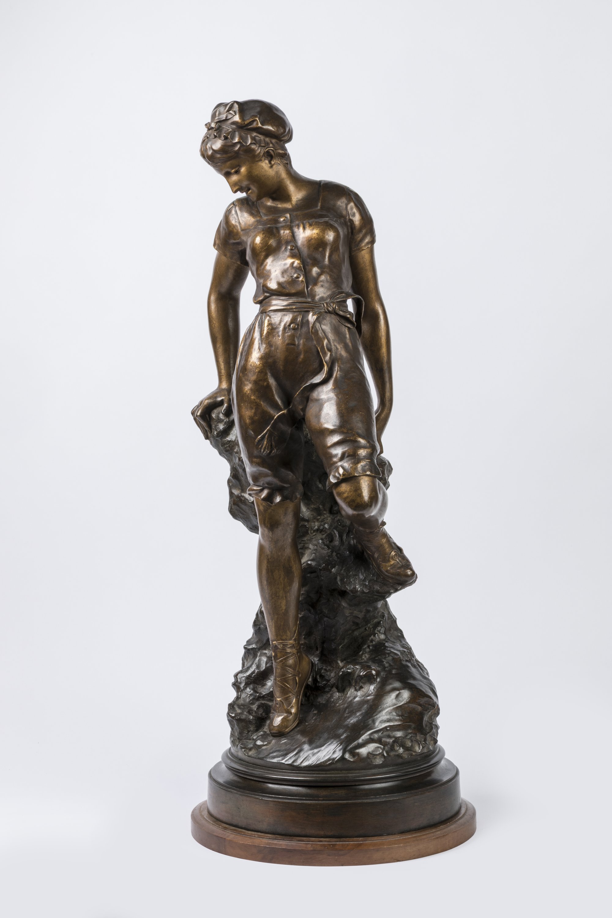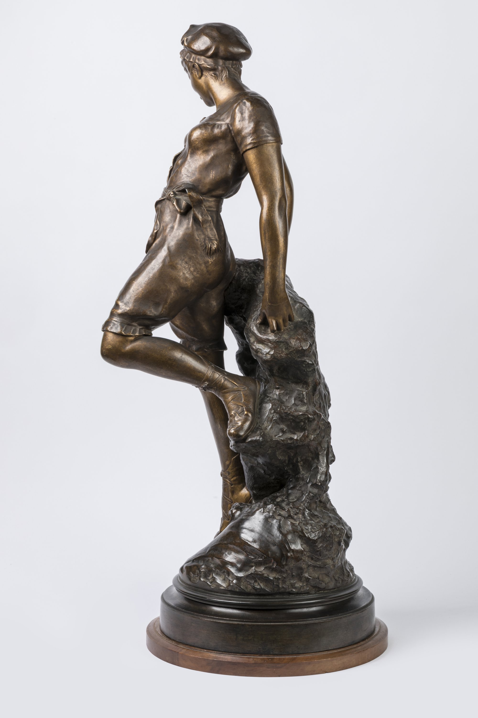 Paul Armand Bayard de La Vingtrie. A bronze sculpture depicting a woman on a rock. Signed. Wooden base.