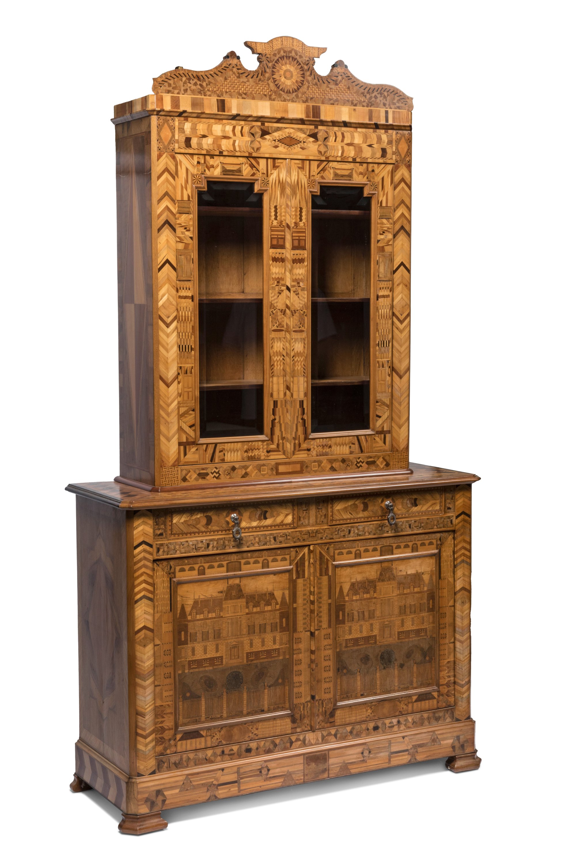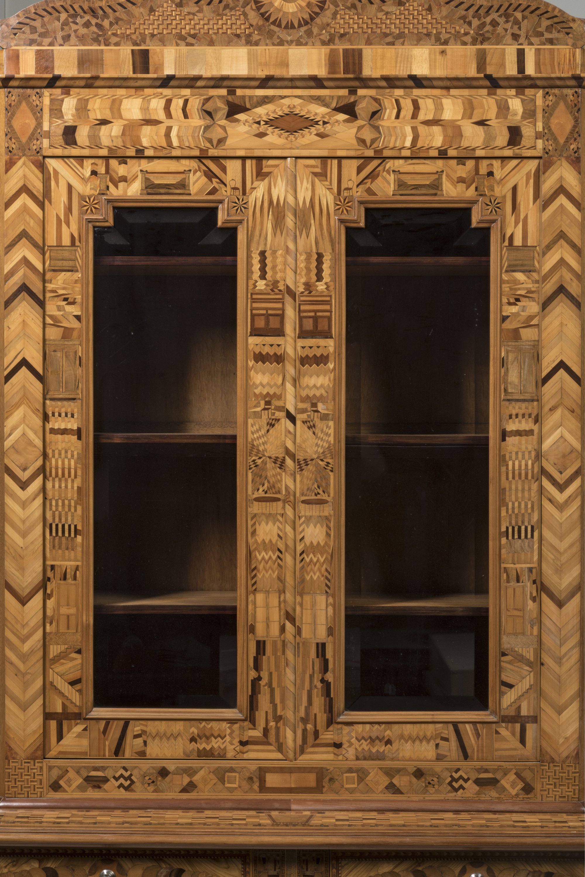 A two-part straw and wood marquetry buffet. Late 19th century.