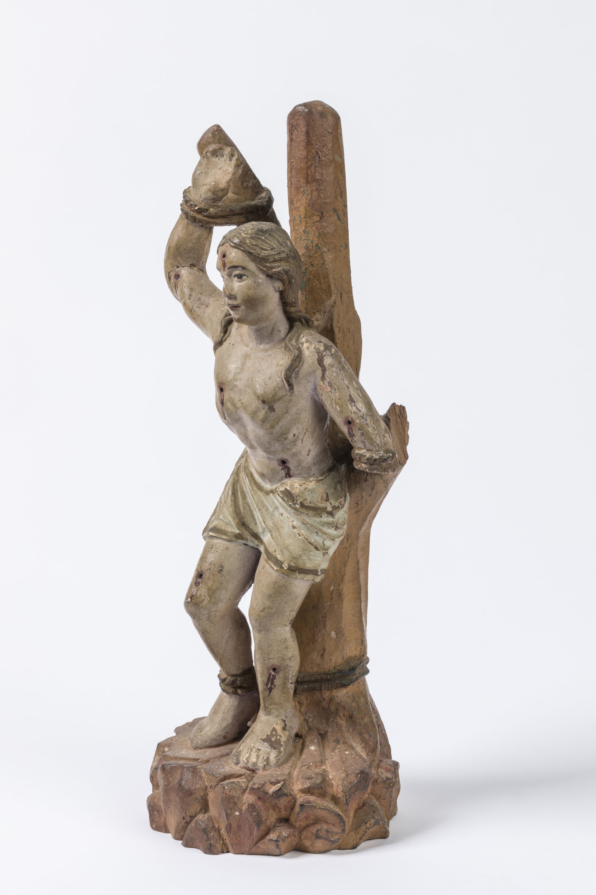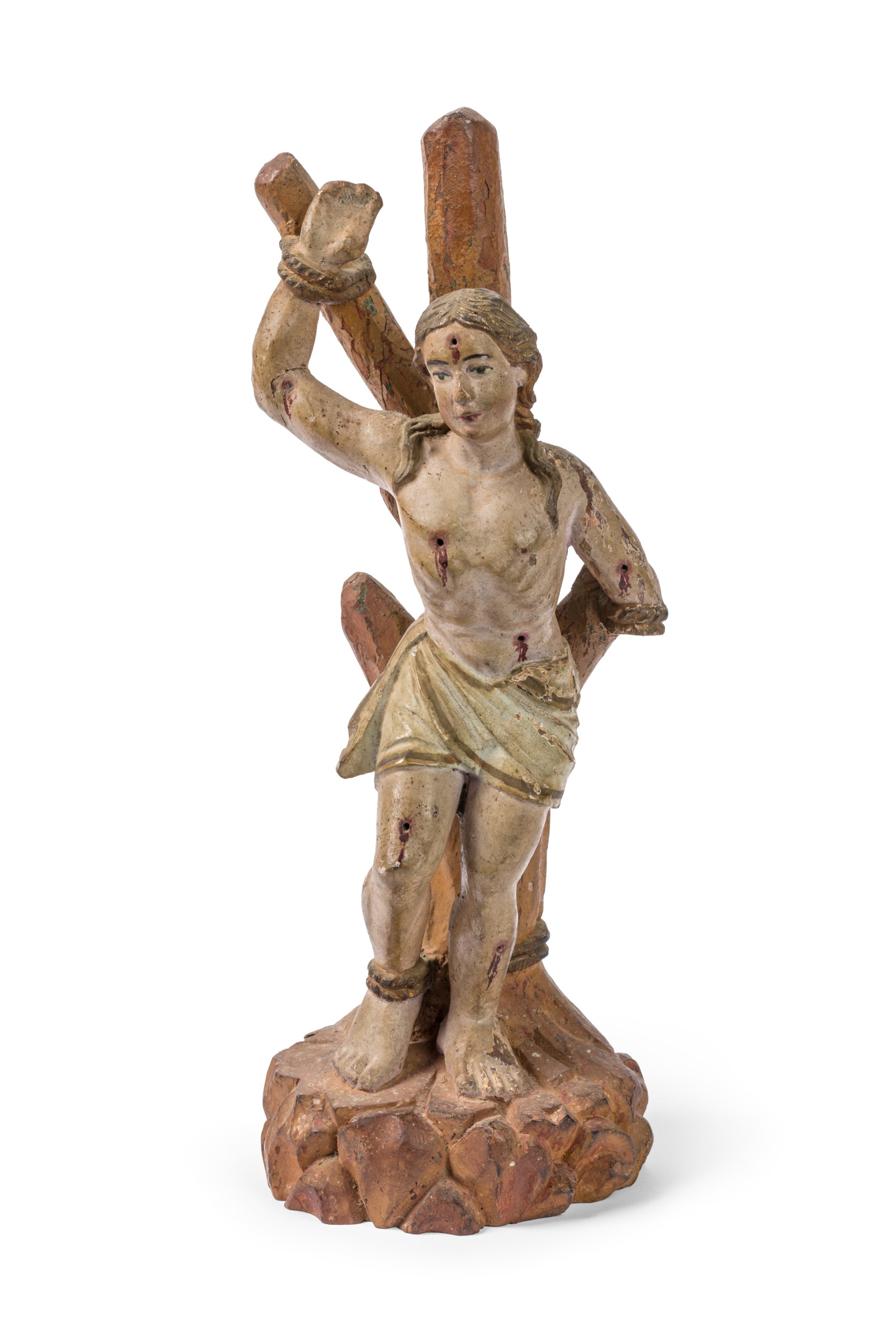 A polychrome and gilt wood figure of Saint Sebastian. Indo-Portuguese school, 18th century.