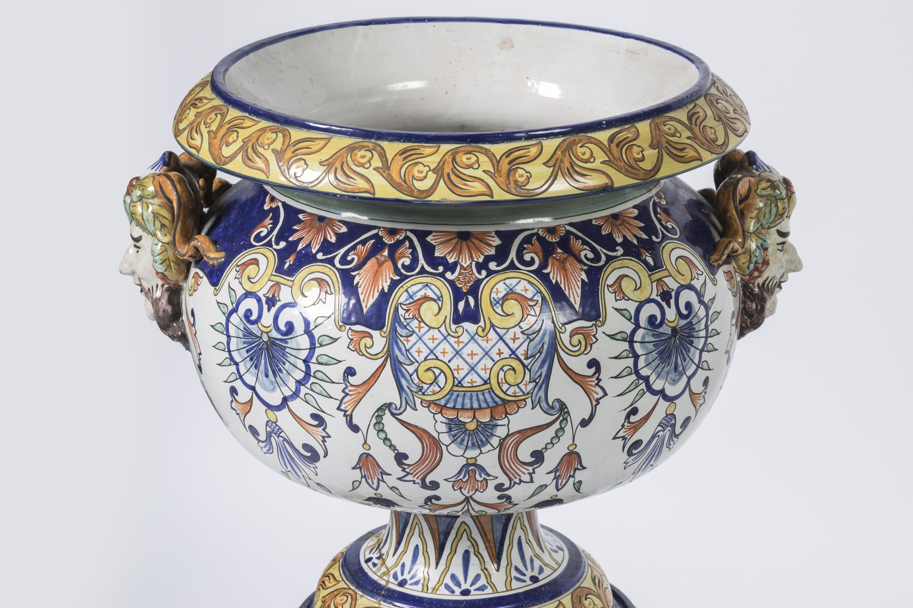 Faïence sur socle à décor émaillé, dans le goût de la Renaissance italienne.