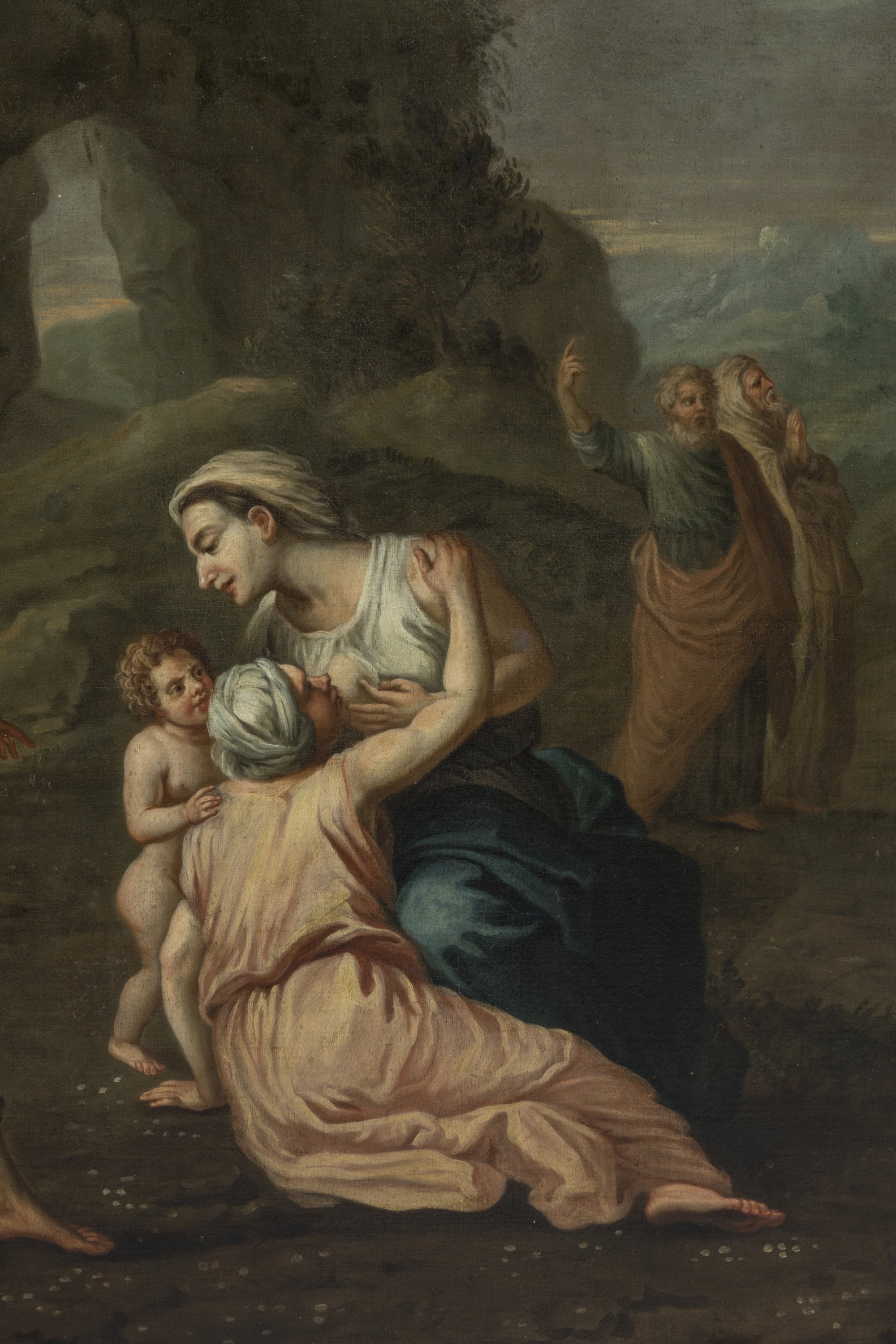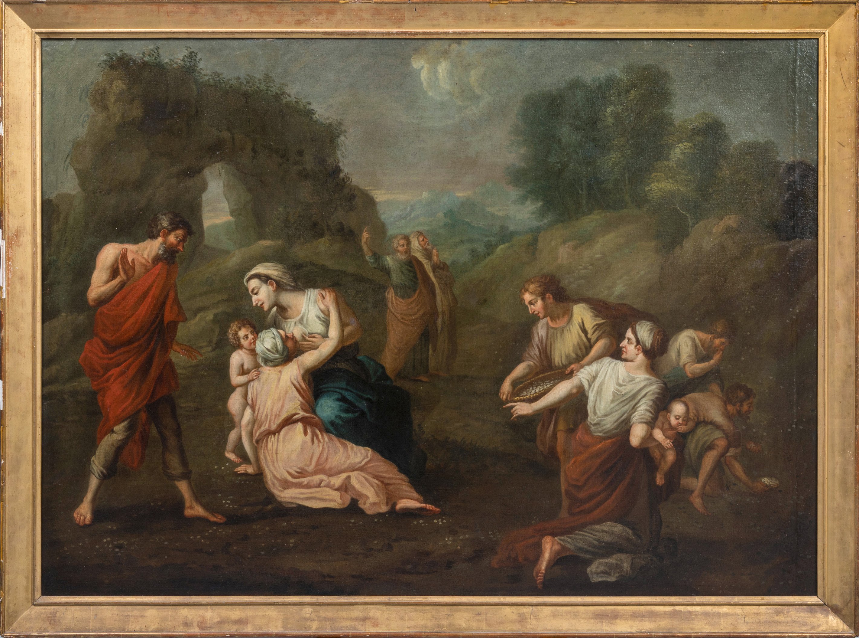 A painting of the harvest of manna after Nicolas Poussin. Oil on canvas. French school ca. 1700.