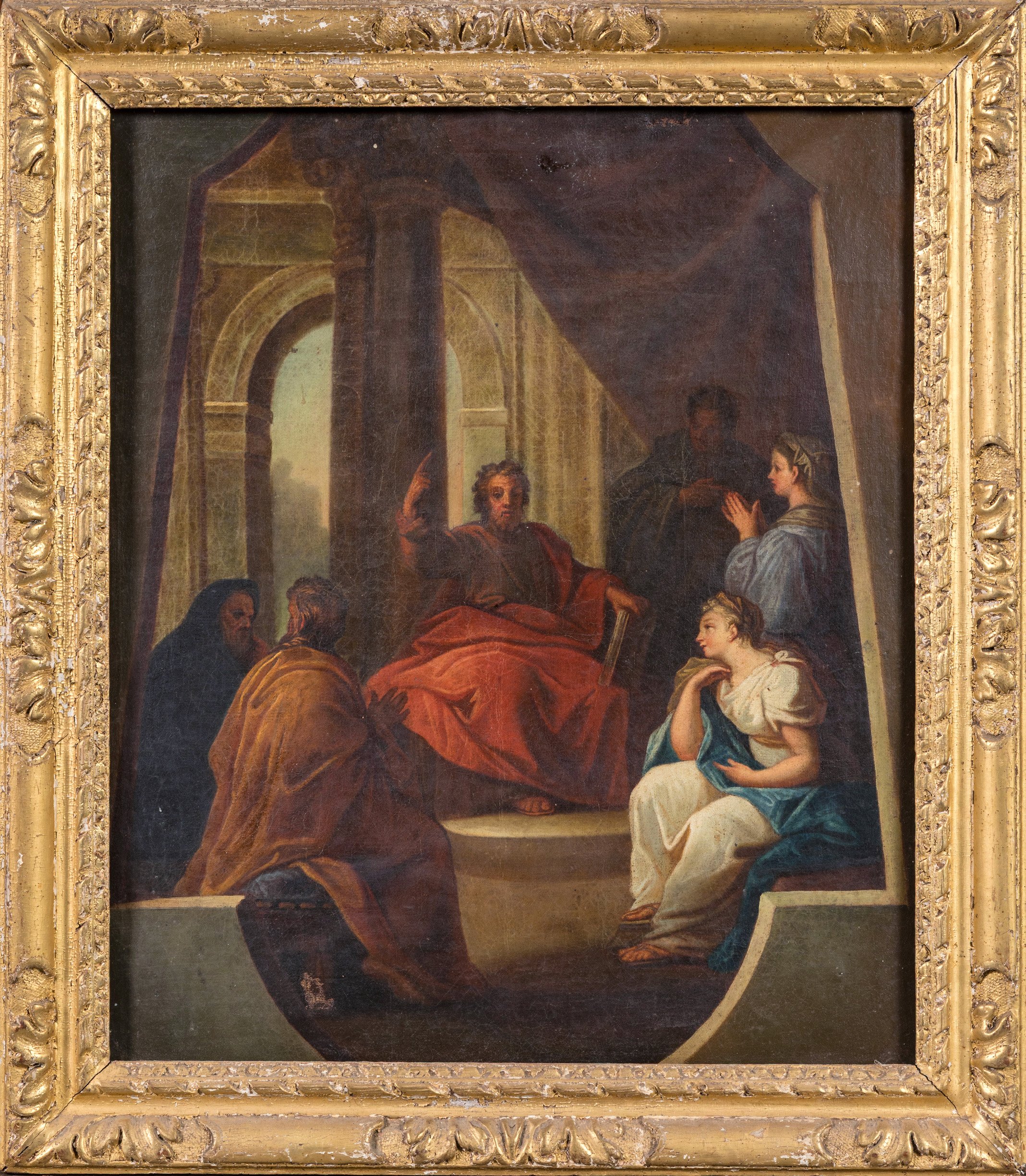 Charles-François Poerson. A painting depicting saint Jerome preaching. Oil on original canvas in a carved giltwood frame. England, 18th century.