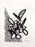 Sur toile, c’est dans l’amoncellement primaire de cette ligne unique et ailée, croqué, entre tag et street art, minimalisme et saturation, que Paf expérimente une peinture qui se veut simple et universelle.