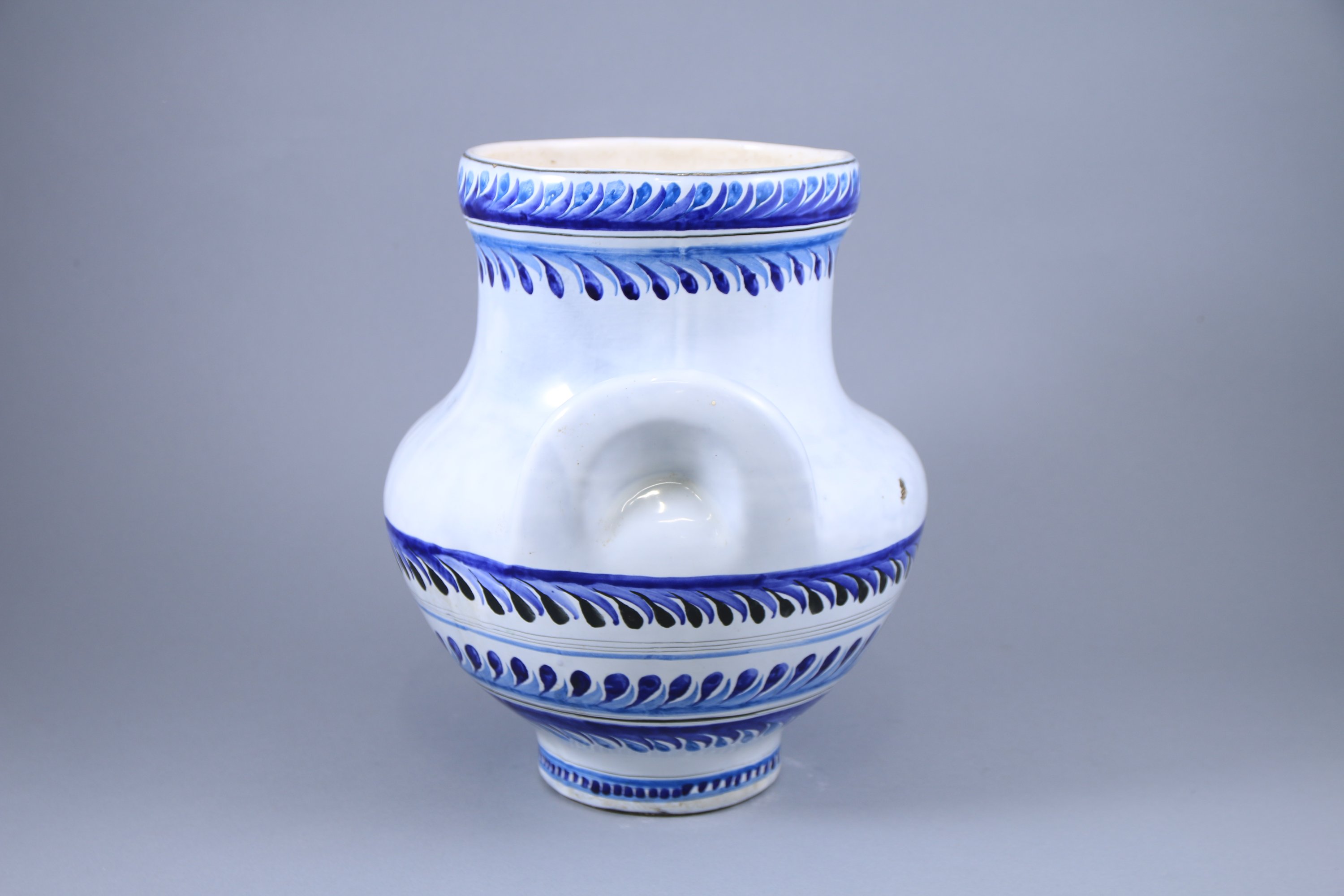 Céramique à décor de guirlandes bleues et blanches à la façon des productions à la bougie du XVIIe siècle.