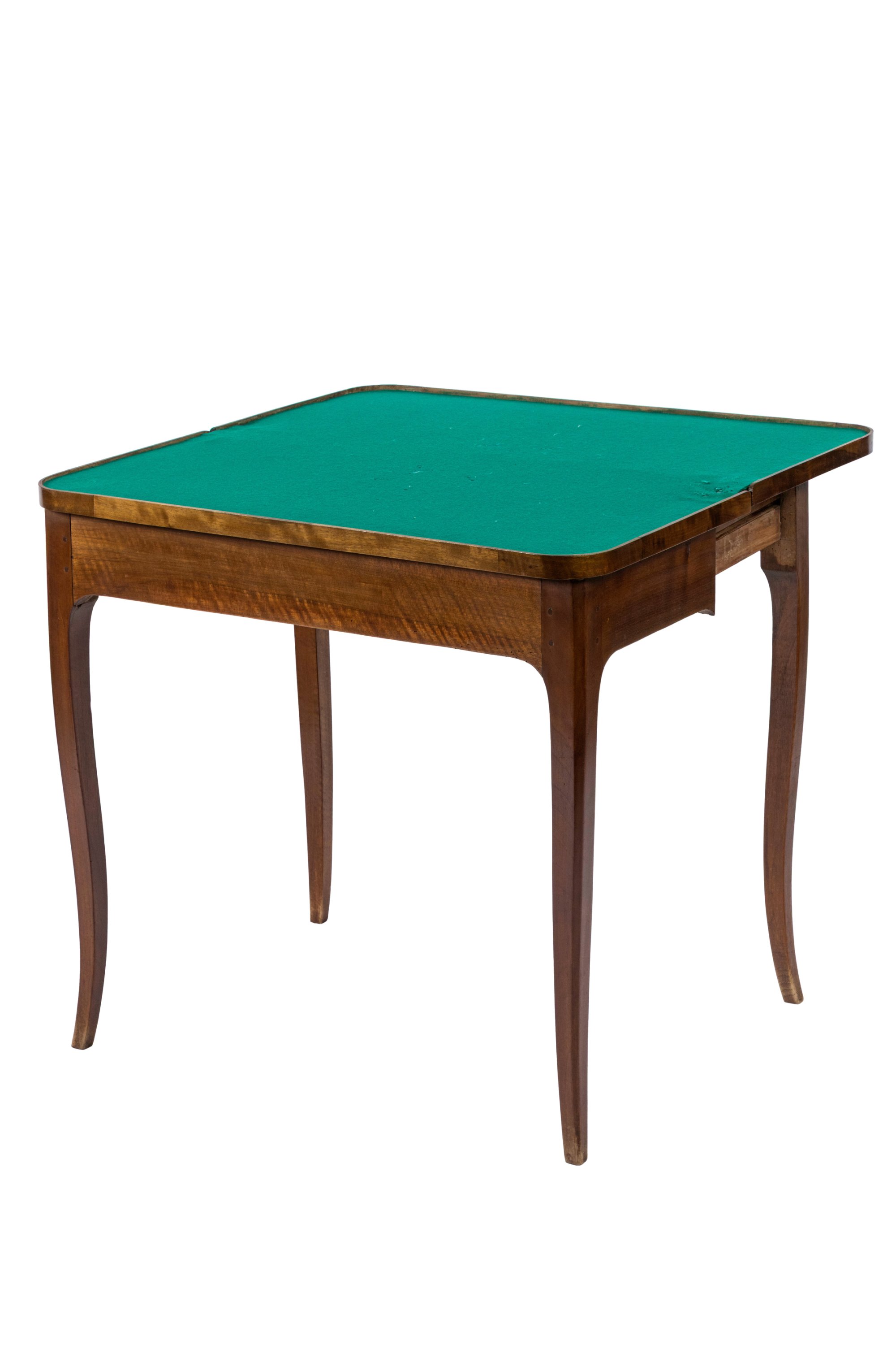 De forme rectangulaire à plateau déployant. Quatre pieds cambrés.