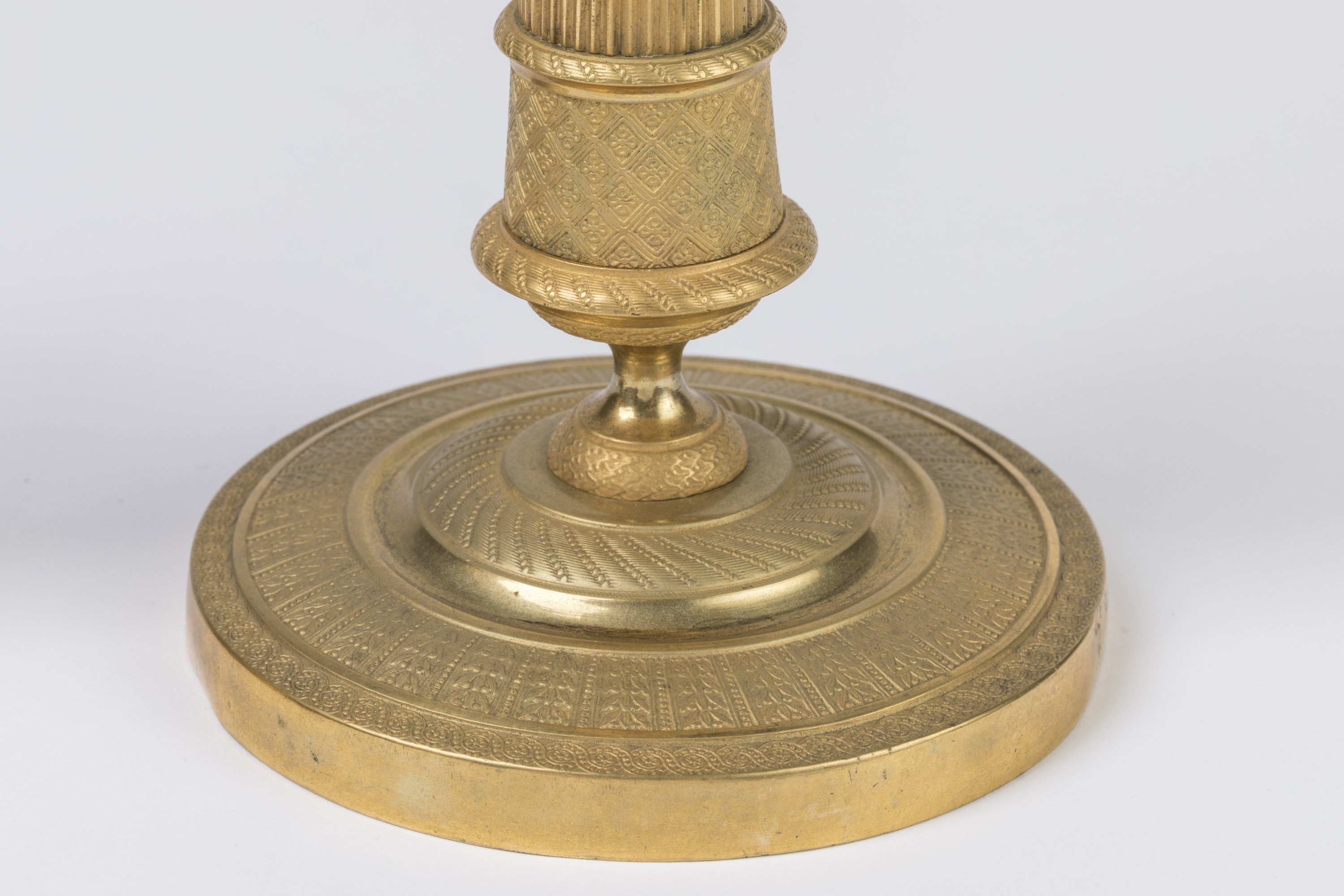 A pair of chiseled and gilded bronze candlesticks. Late 18th century.
