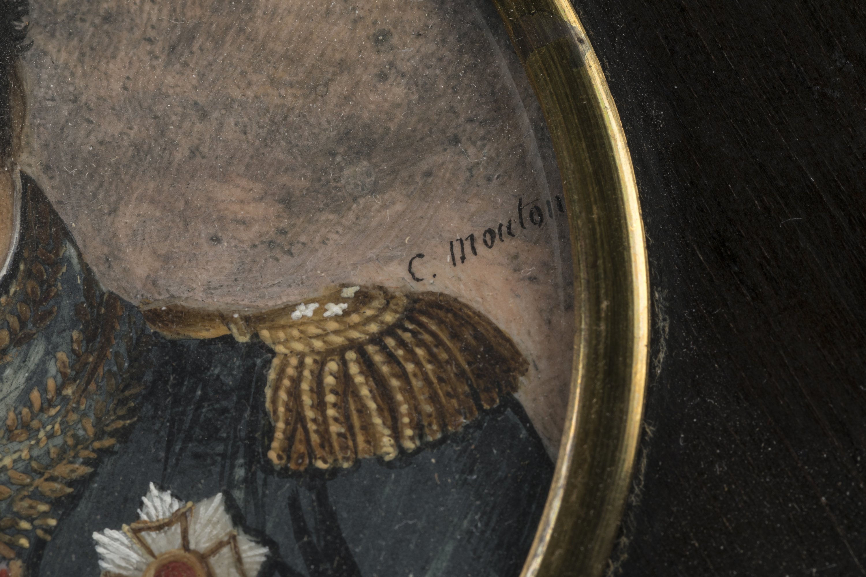 - Une miniature d’époque Premier Empire signée C. Mouton à Besançon en collection privée.