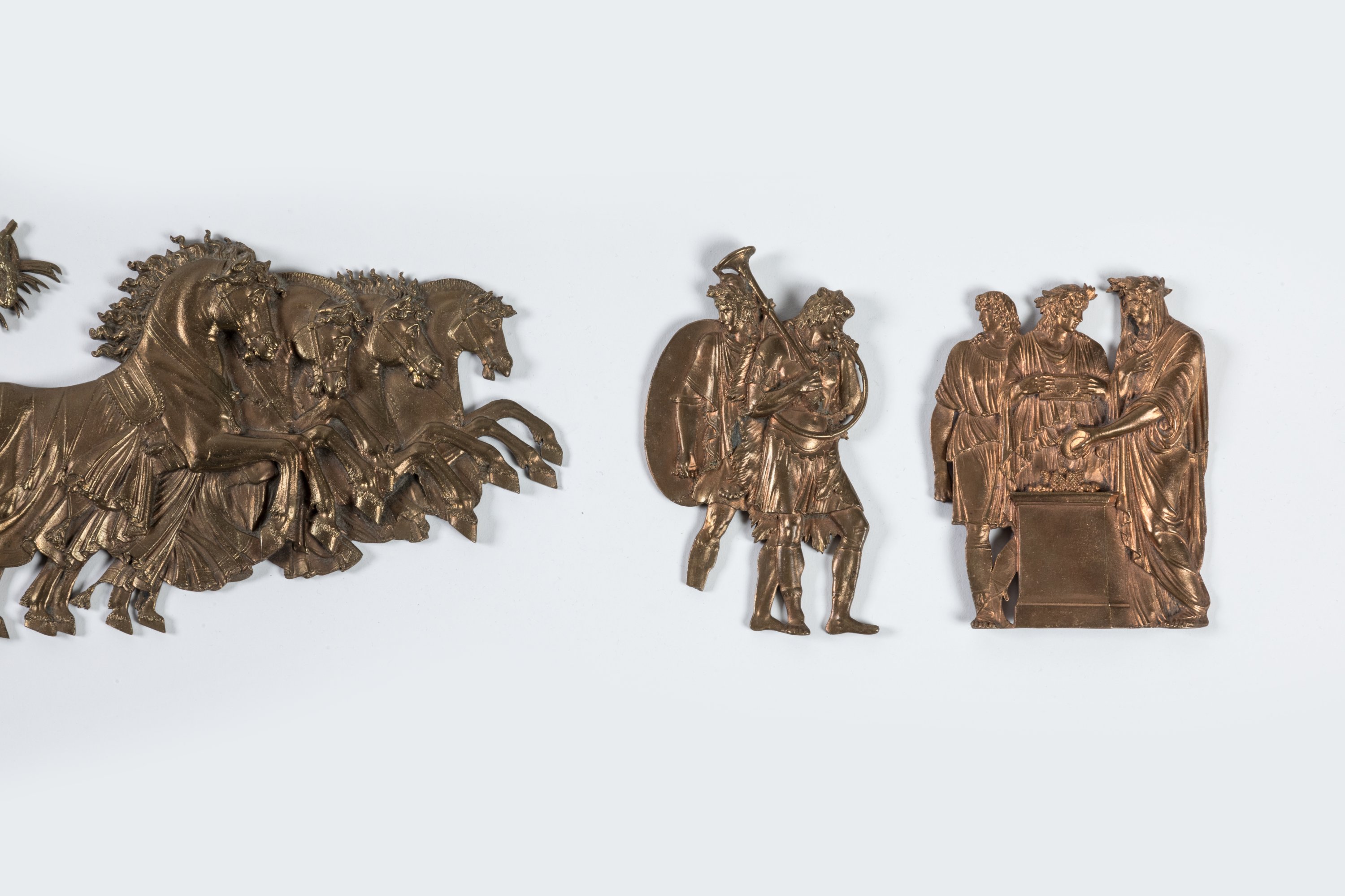 Pierre-Philippe Thomire, ca. 1806. A set of 6 bronze bas reliefs depicting Trajan's triumph. Model used for bronze mounts for console tables furnishing the Fontainebleau apartments of French Empress Joséphine or Anatole Demidoff's fireplace.