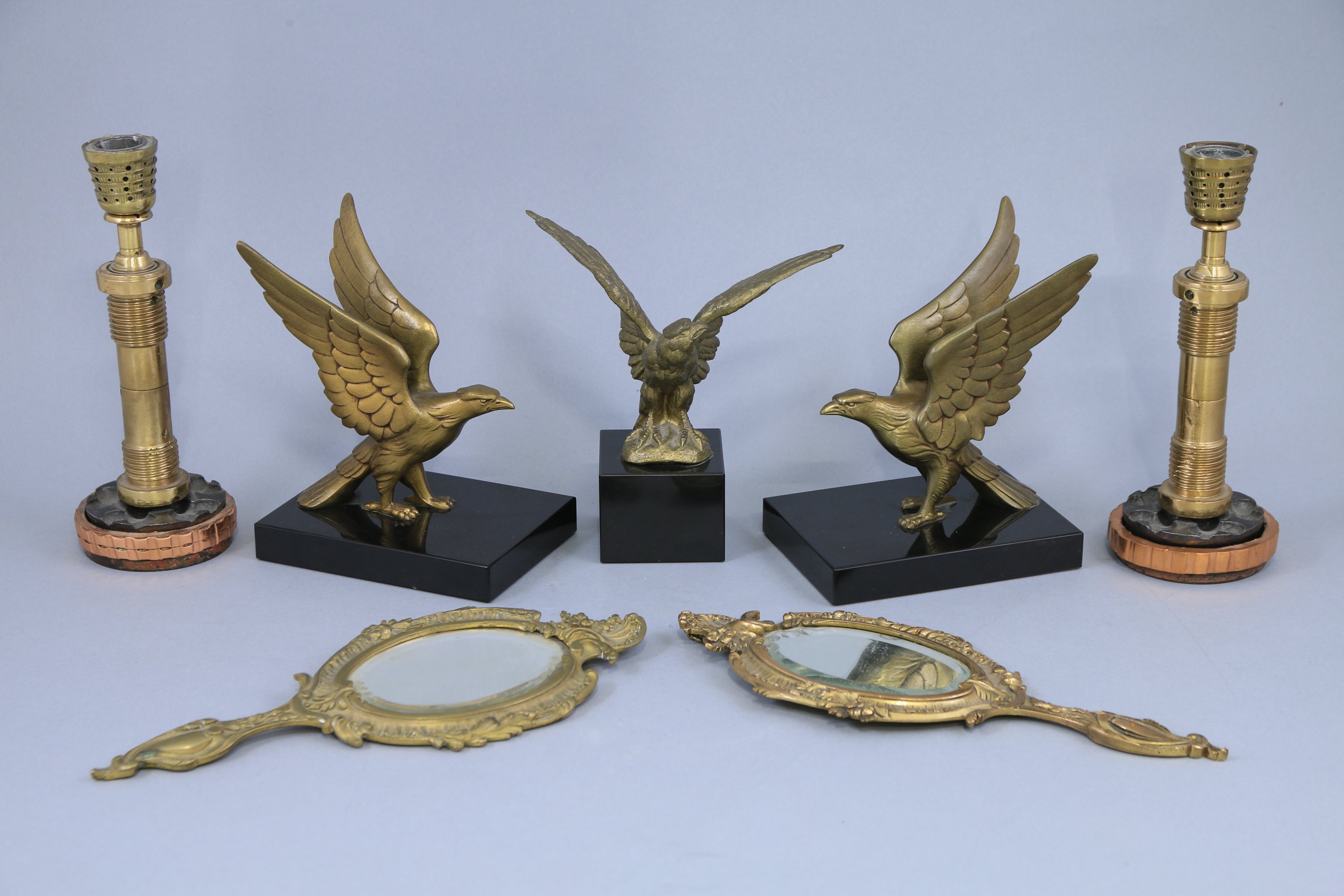 - Paire de serre-livres en régule et marbre noir en forme d'aigle de style Art Déco.