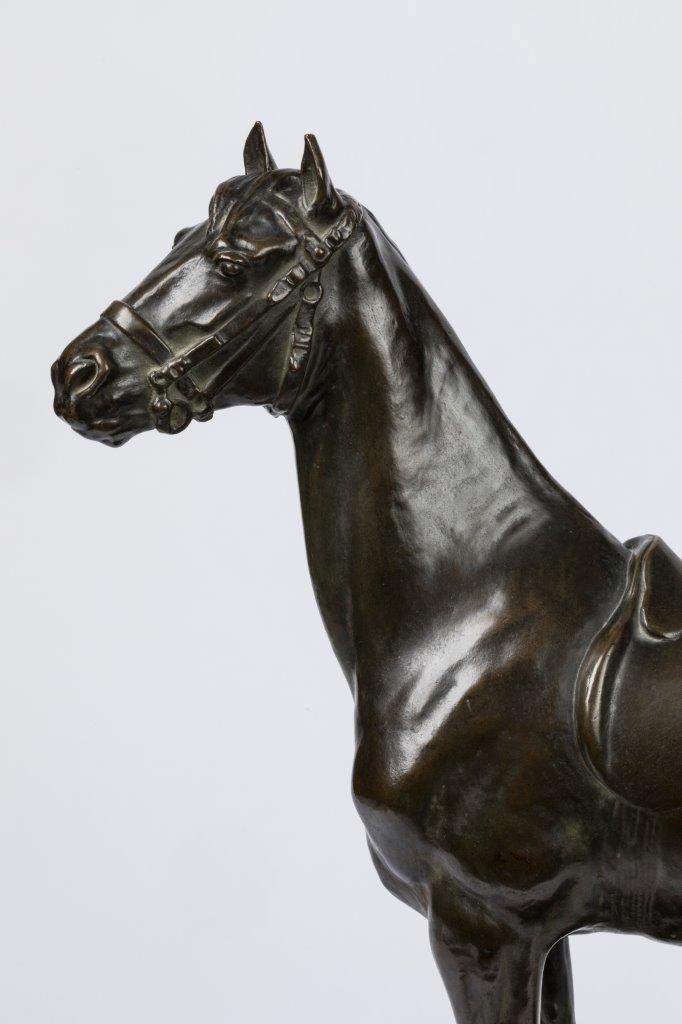 Godefroid Devreese. A ca. 1892 bronze sculpture of a stallion. Signed.