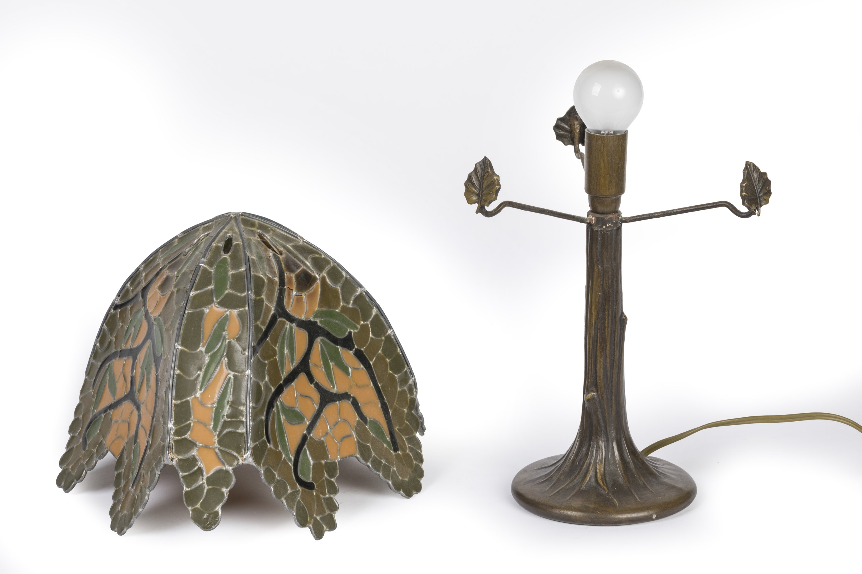 En forme de tronc d'arbre, l'abat-jours formant un feuillage automnal.