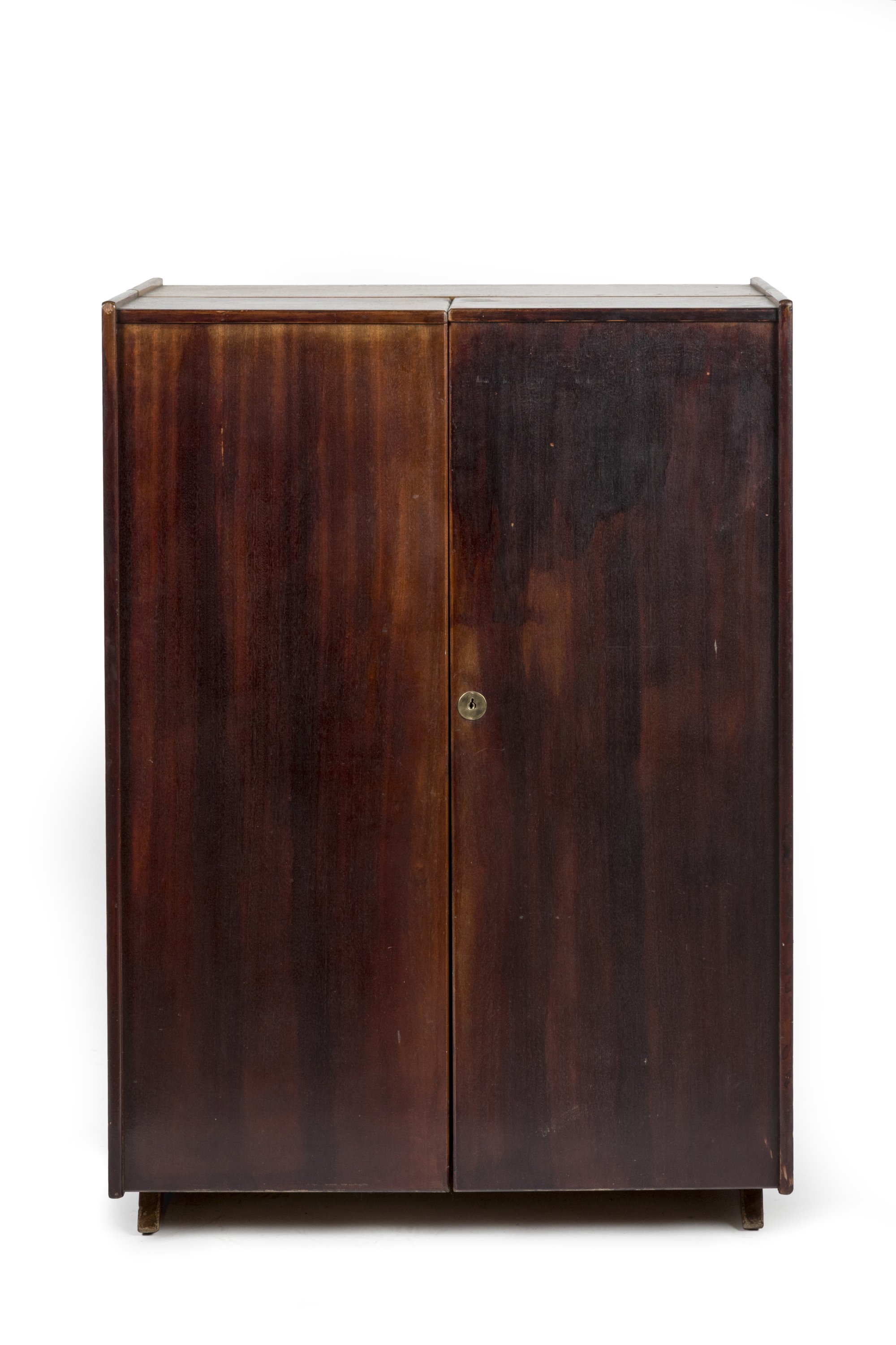 Ouvrant par deux portes découvrant un plateau entouré de casiers.