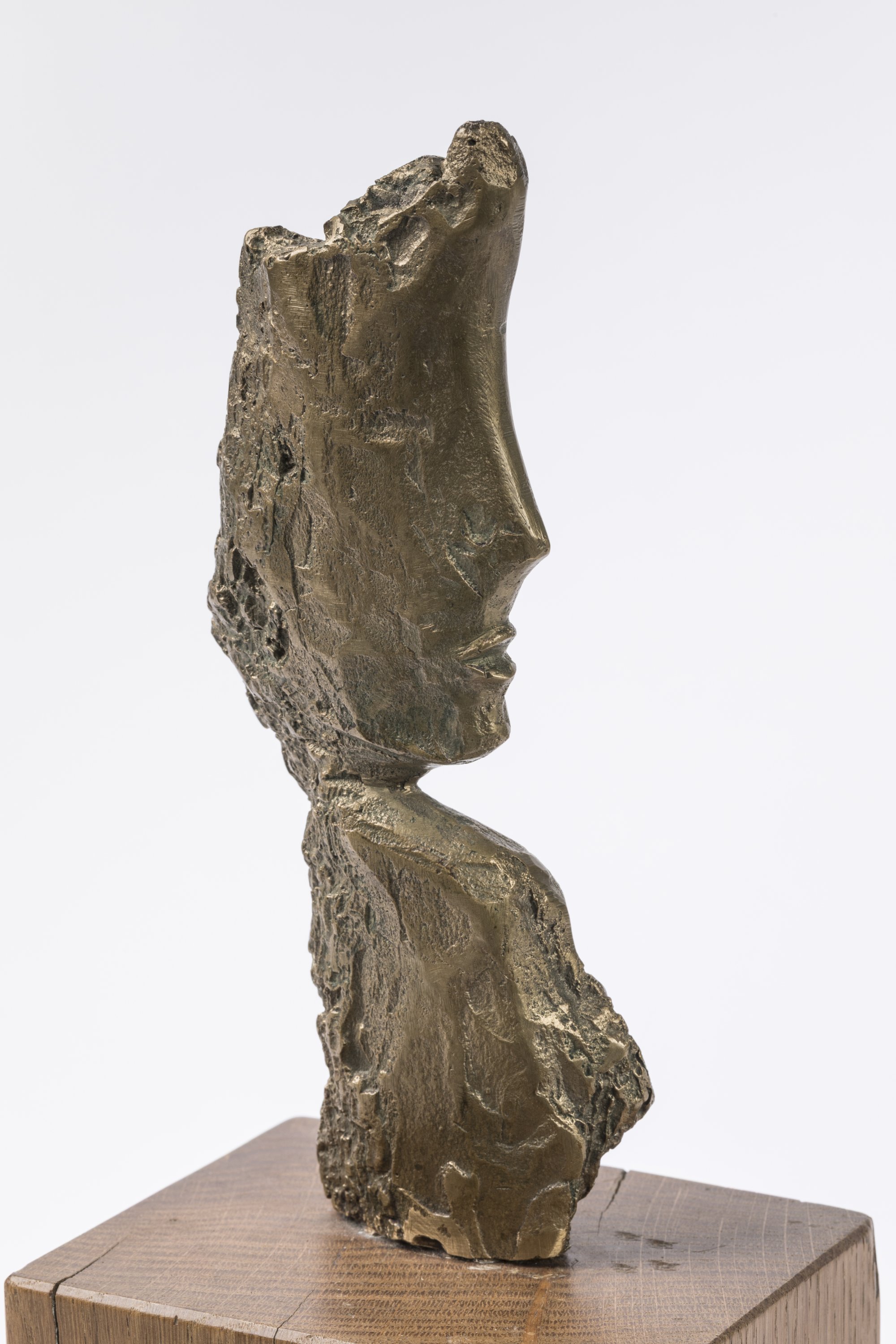 Socle cubique en bois brut. Haut. totale 29 cm.