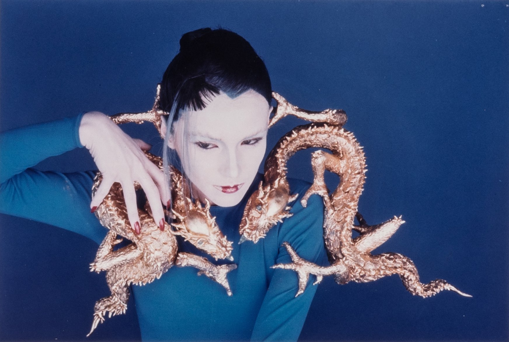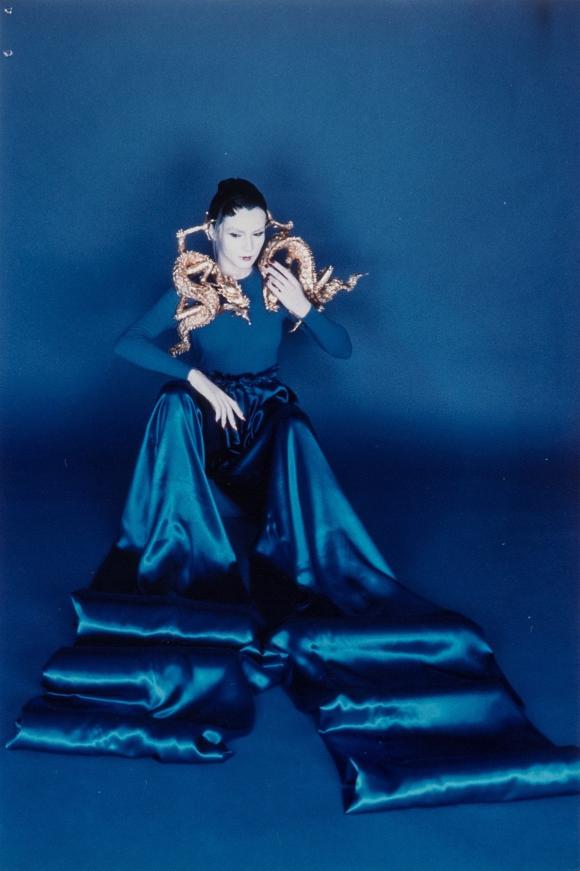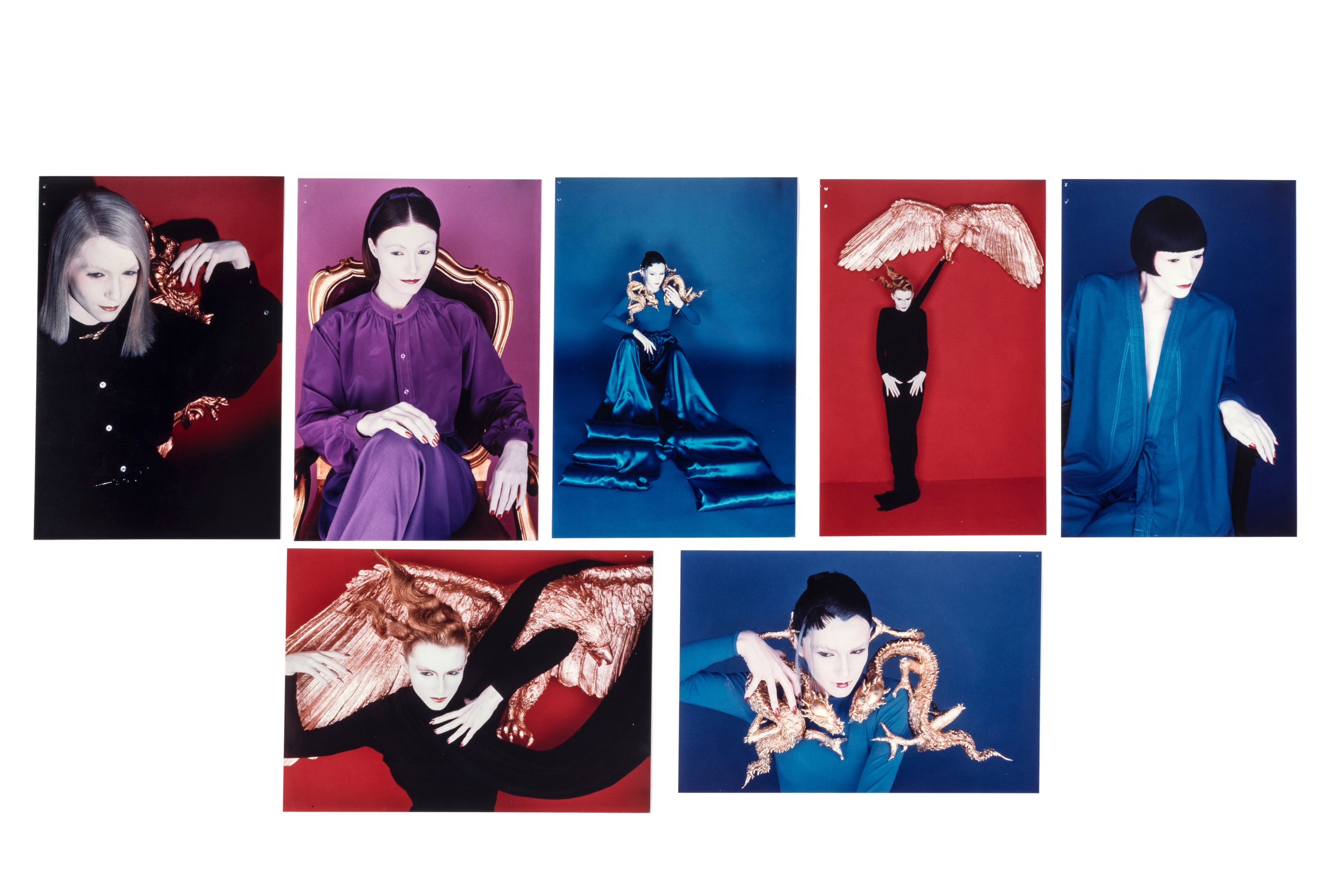 Monsieur Lutens nous demande de préciser que ces tirages reproduits en série constituent des documents de travail de l’époque, réalisés pour la promotion de produits cosmétiques. Ils ne correspondent pas à la vision de Serge Lutens de son œuvre photographique.