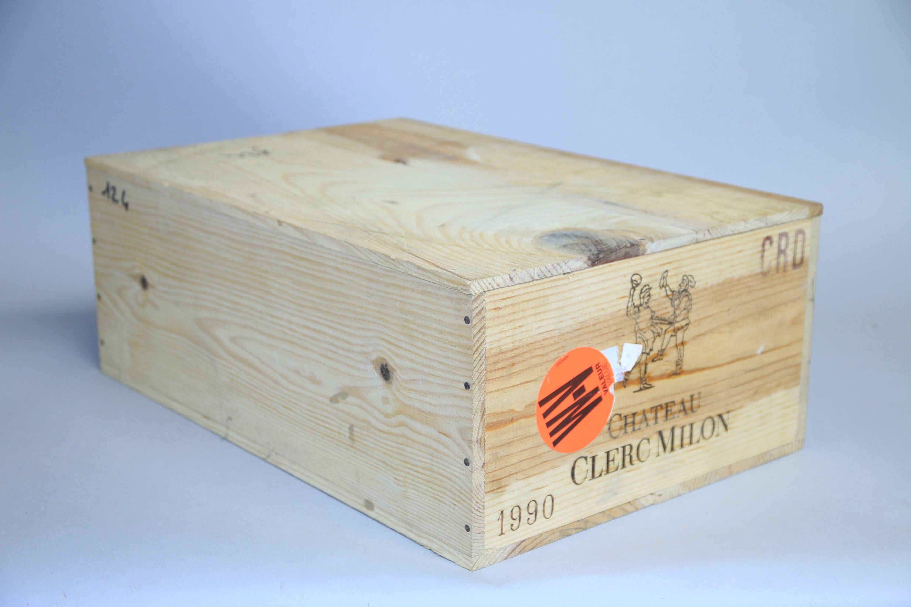Pauillac, Château Clerc Milon, 5ème Grand Cru classé, 1990, 12 bouteilles. Caisse en bois d'origine (numérotation au feutre).