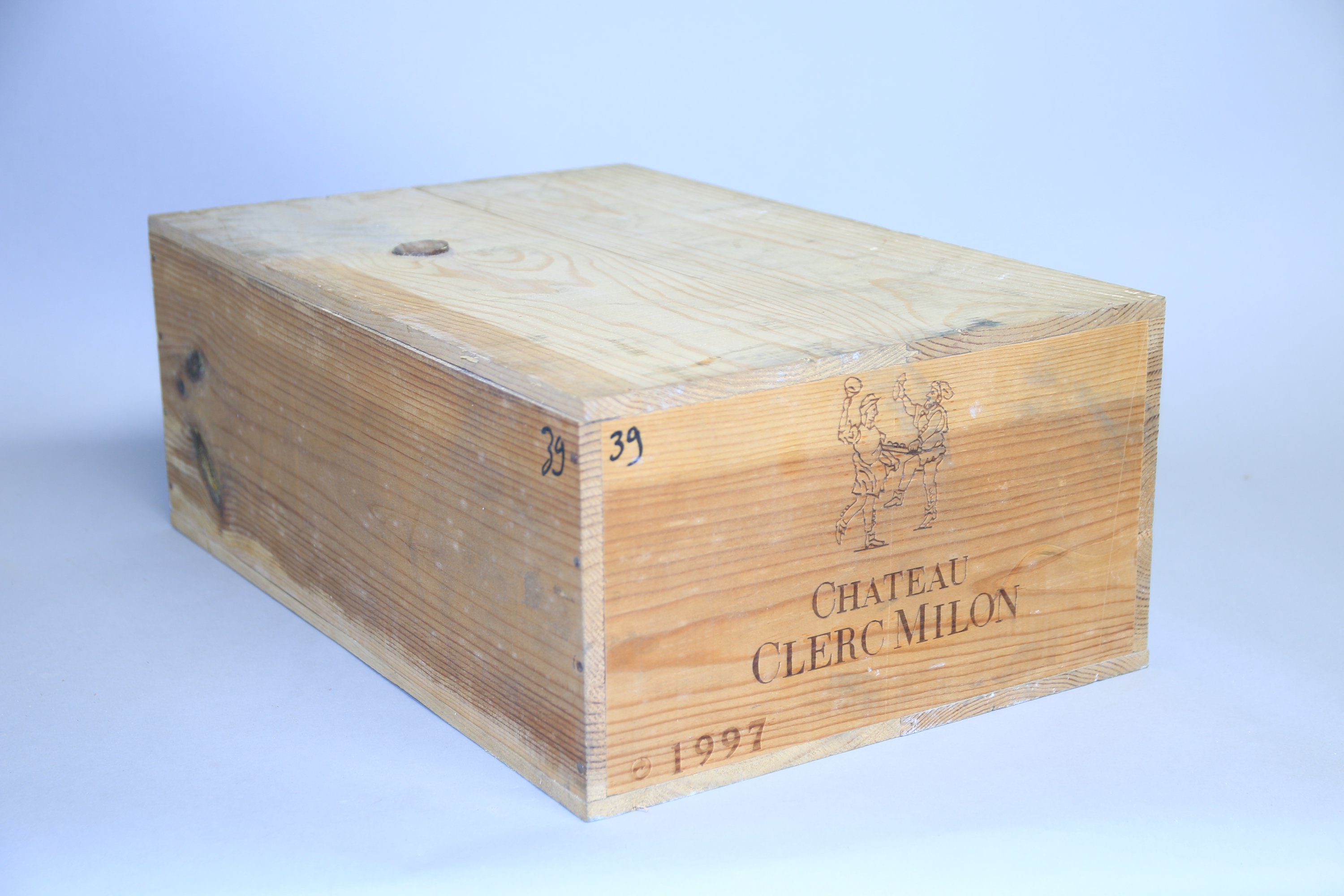 Pauillac, Château Clerc Milon, 5ème Grand Cru classé, 1997, 12 bouteilles. Caisse en bois d'origine (numérotation au feutre).
