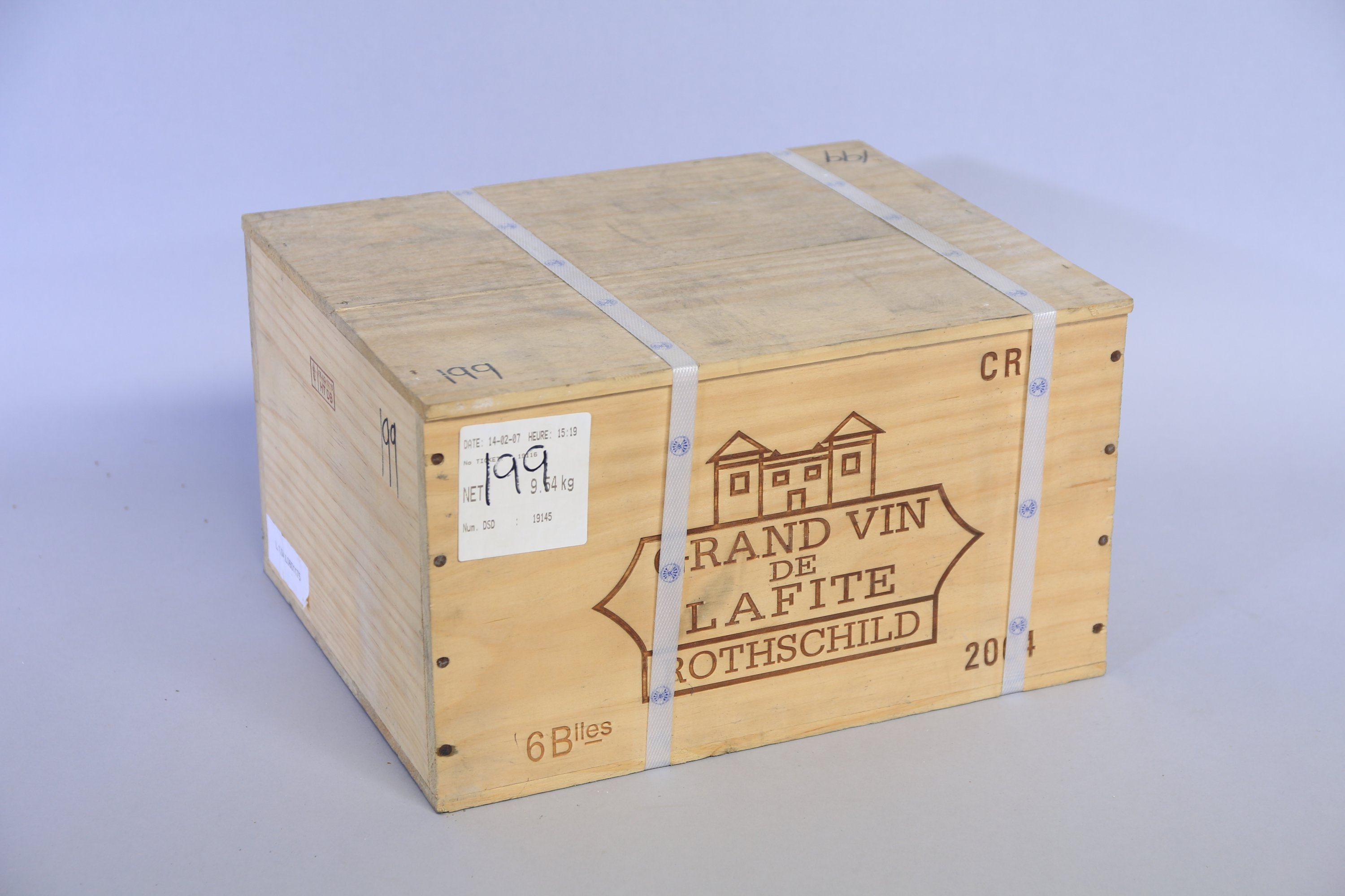 Pauillac, Château Lafite-Rothschild, 1er Grand Cru classé, 2004, 6 bouteilles. Caisse cerclée en bois d'origine (numérotation au feutre).