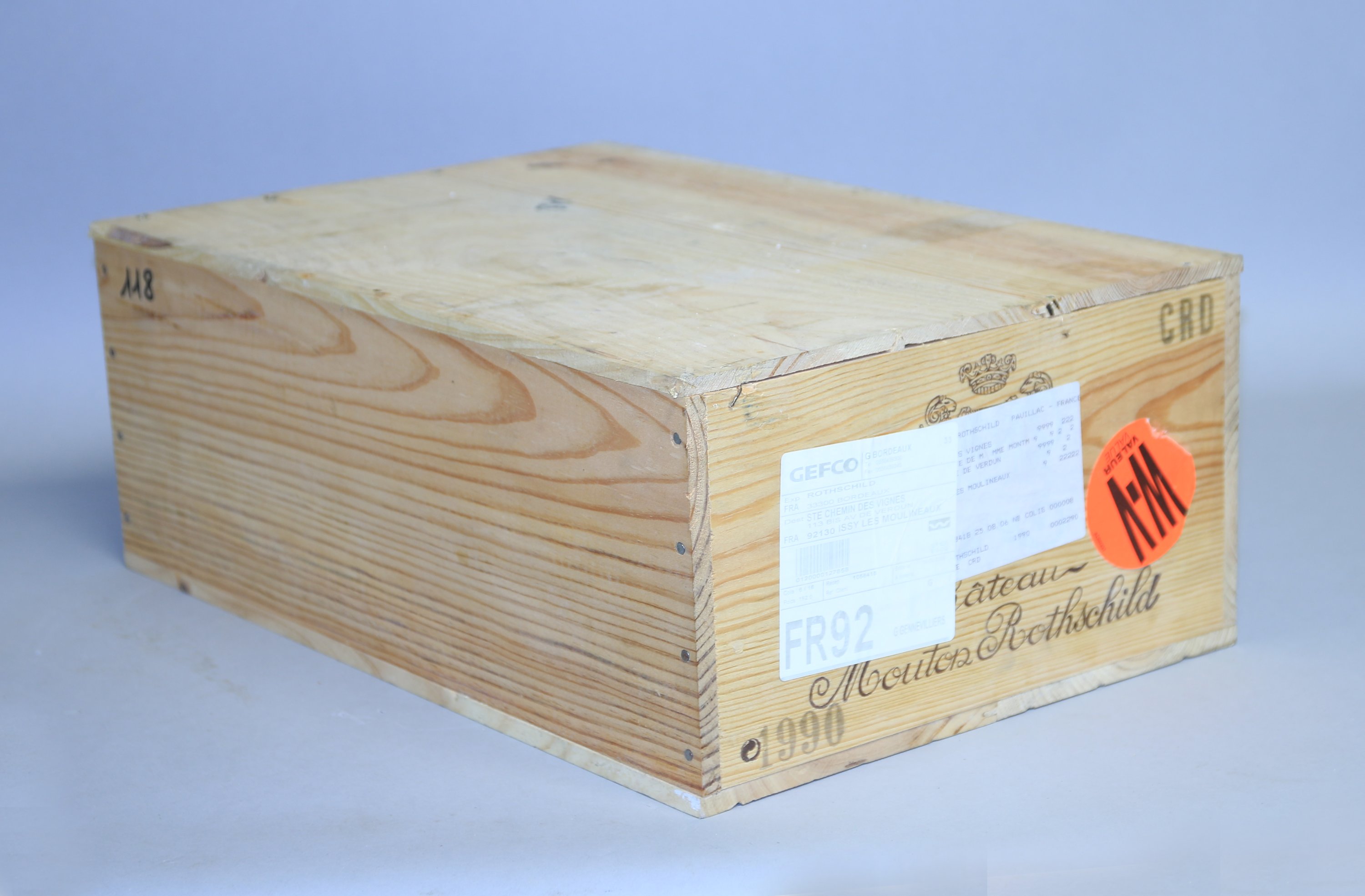 Pauillac, Château Mouton Rothschild, 1er Grand Cru classé, 1990, 11 bouteilles. Caisse de 12 refermée (numérotation au feutre).