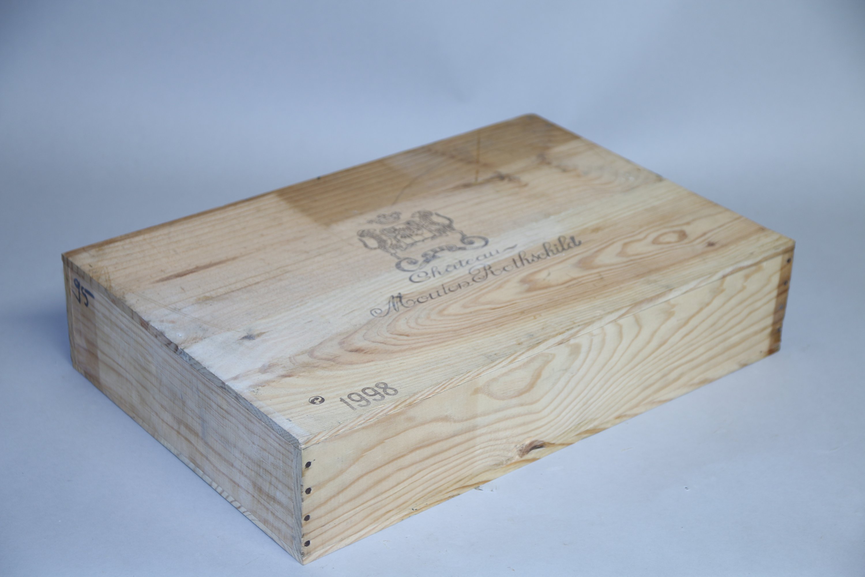 Pauillac, Château Mouton Rothschild, 1er Grand Cru classé, 1998, 6 bouteilles. Caisse en bois d'origine (numérotation au feutre).