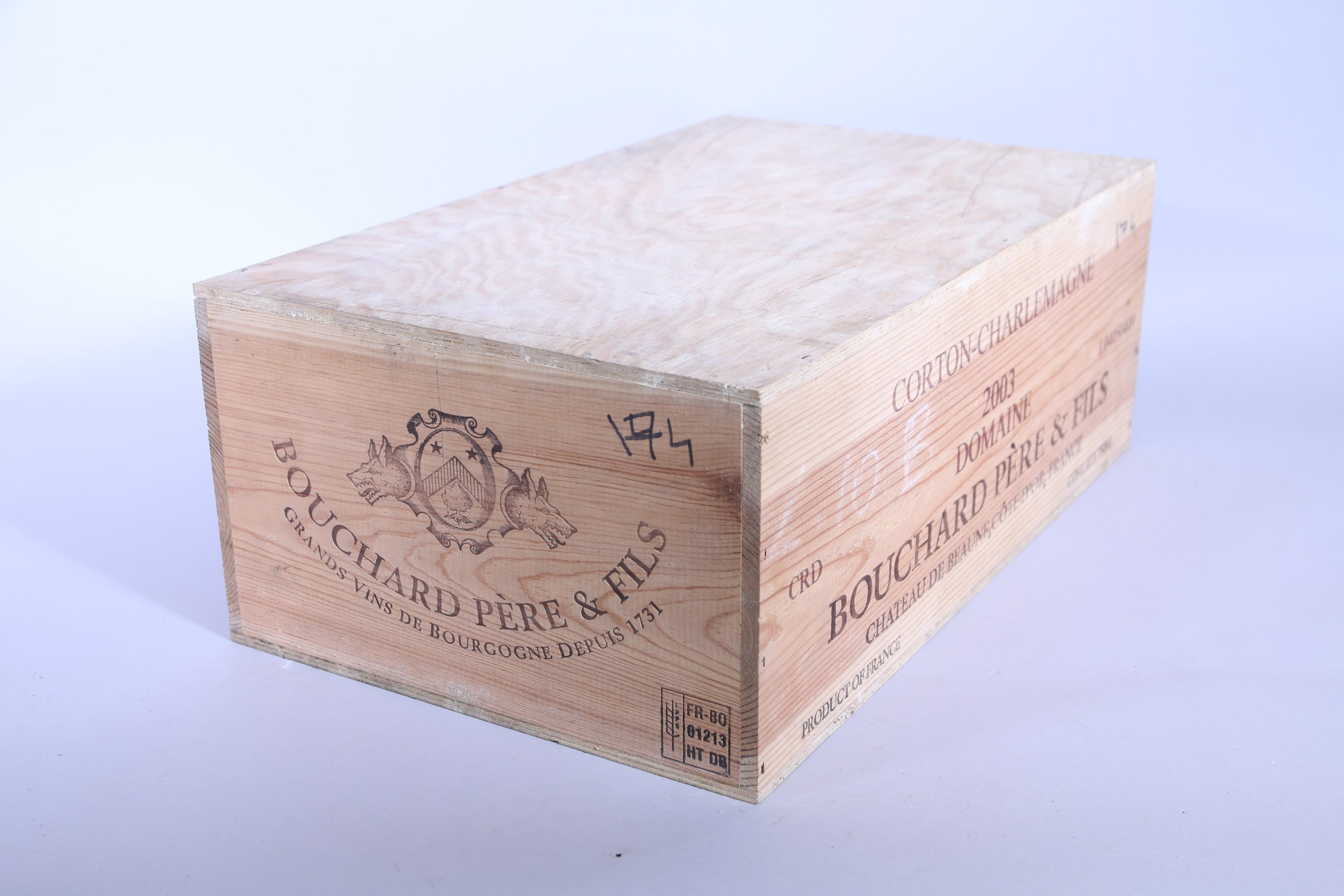 Corton-Charlemagne, Bouchard Père et Fils, 2003, 12 bouteilles. Caisse en bois d'origine (numérotation au feutre).
