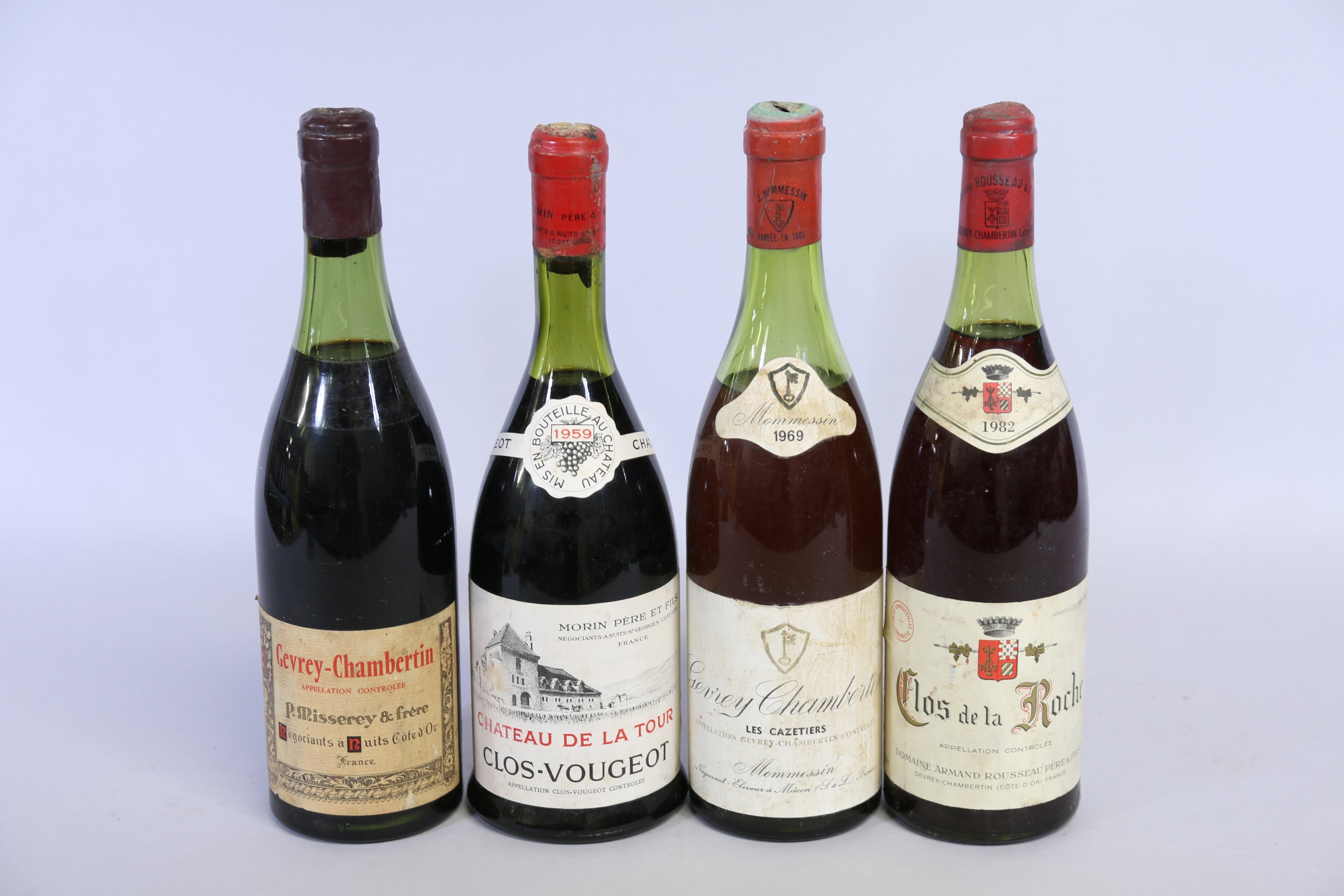 - Gevrey-Chambertin, Domaine Armand Rousseau, Clos de la Roche, 1982, 1 bouteille. Niveau: 3 cm. Etiquette: tachée et quelques petits accrocs. Capsule: bon état.