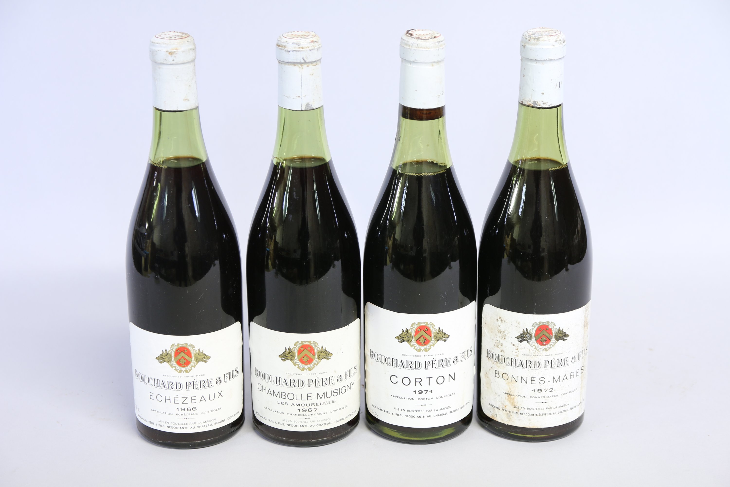 - Bonnes-Mares, 1972, 1 bouteille. Niveau: 4,2 cm. Etiquette: abîmée. Capsule: bon état.