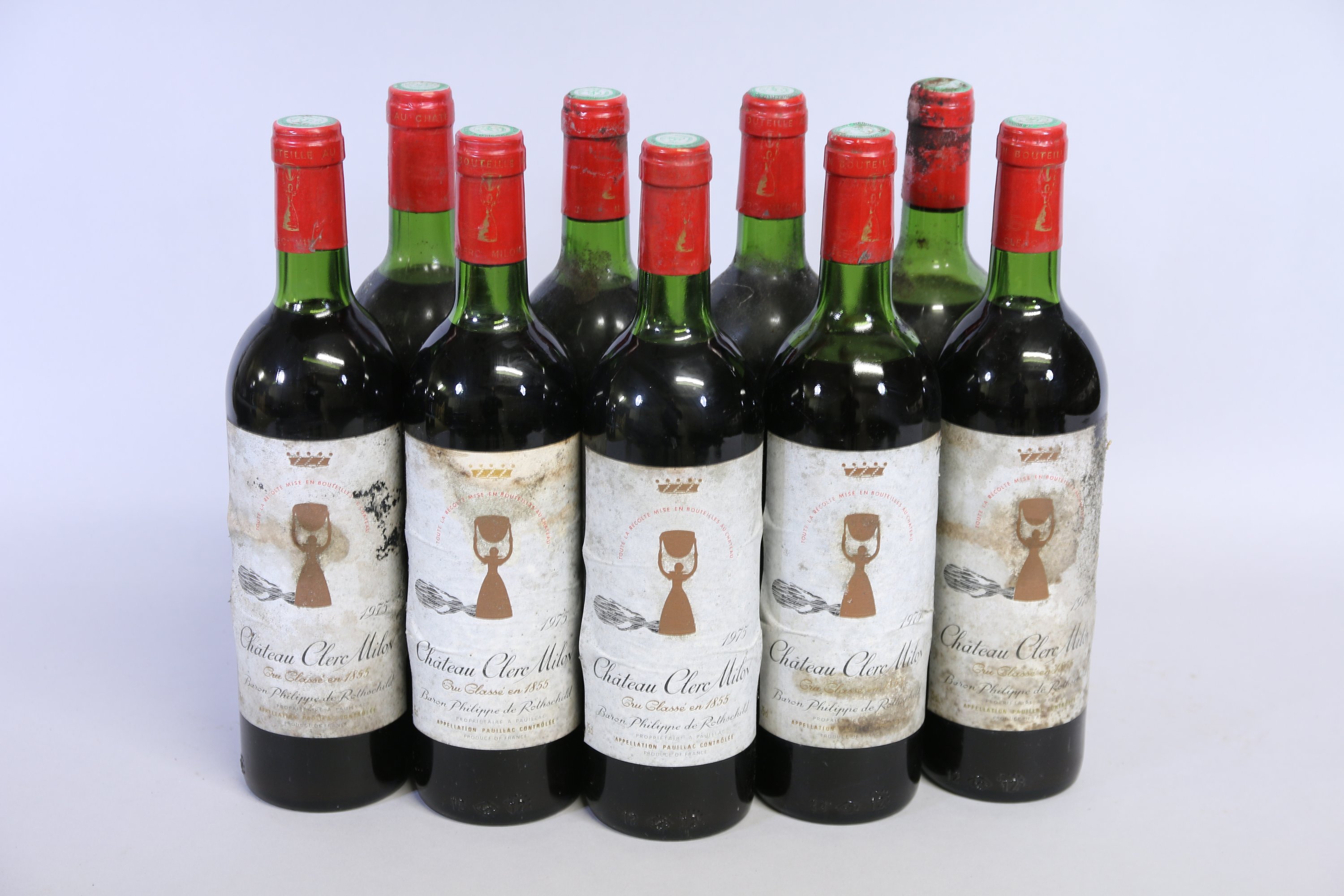 Pauillac, Château Clerc Milon, 5ème Grand Cru classé, 1975, 9 bouteilles.