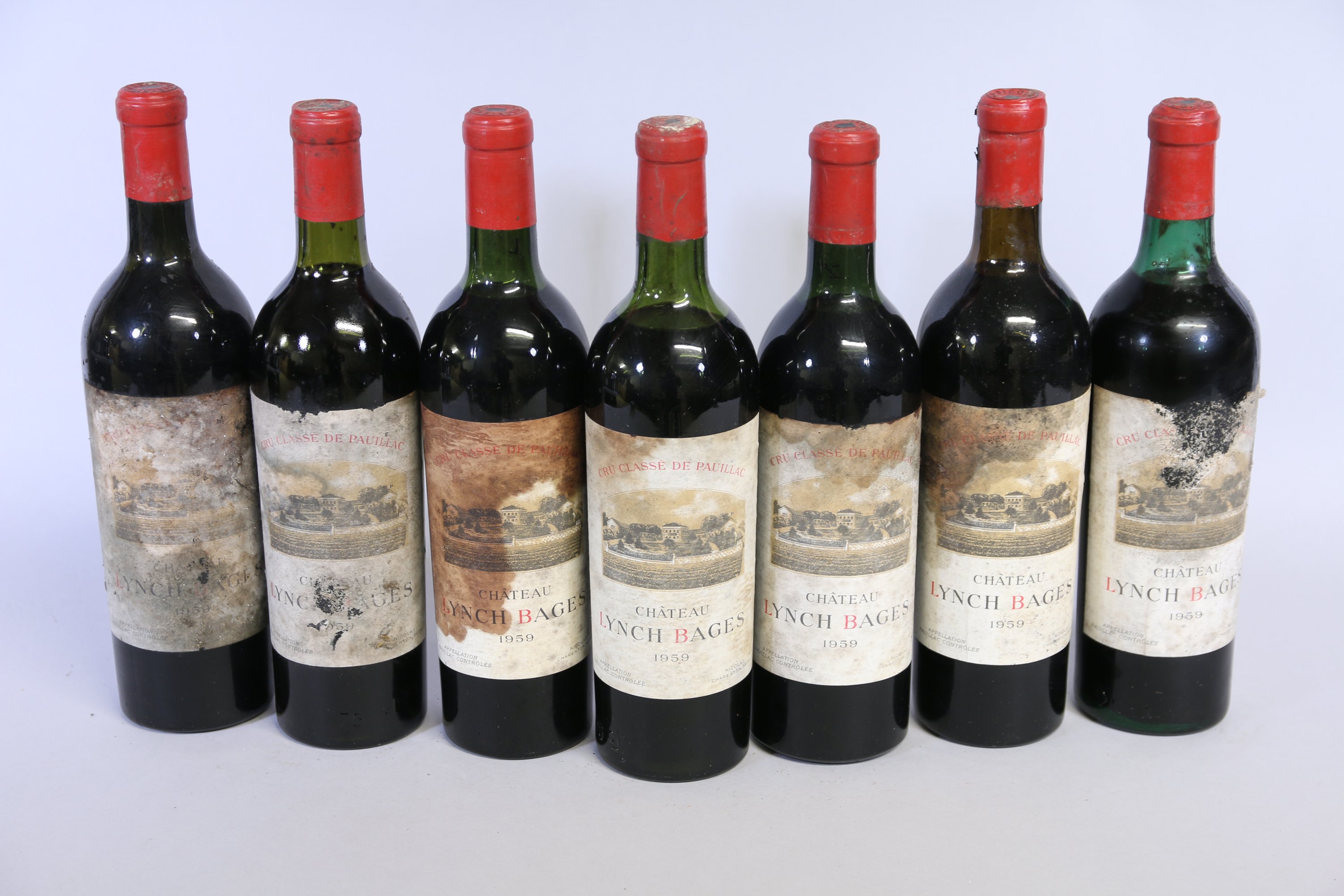 Pauillac, Château Lynch Bages, 5ème Grand Cru classé, 1959, 7 bouteilles.