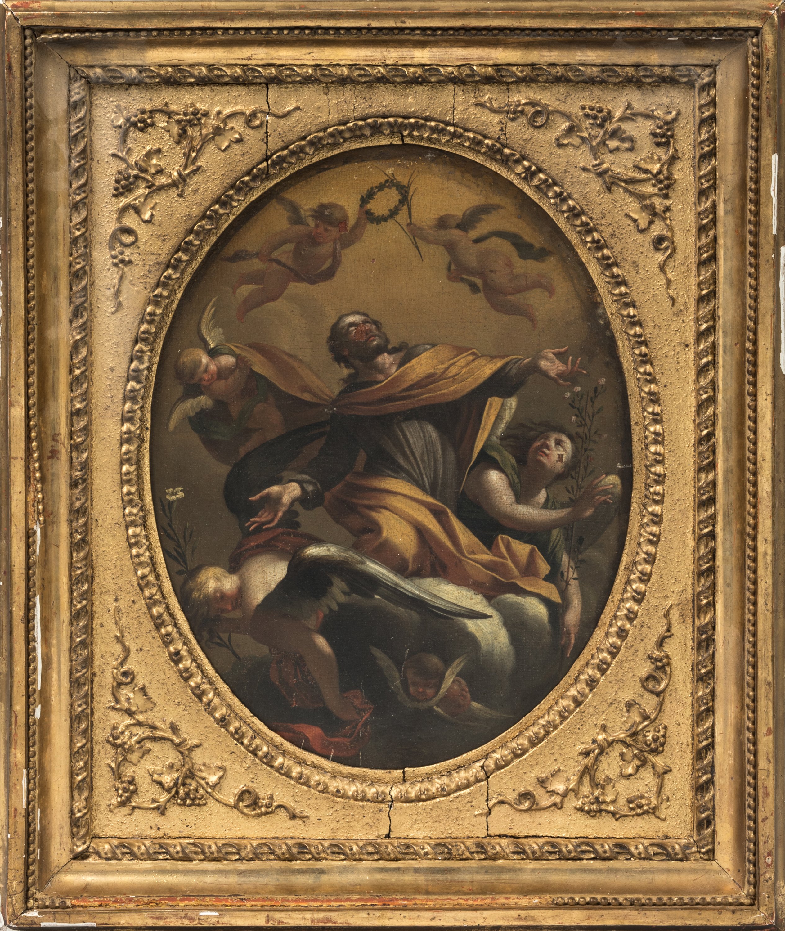 French School, 18th century. The Apotheosis of Saint Joseph. After an engraving by Simon Vouet. Oil on canvas mounted on wood.