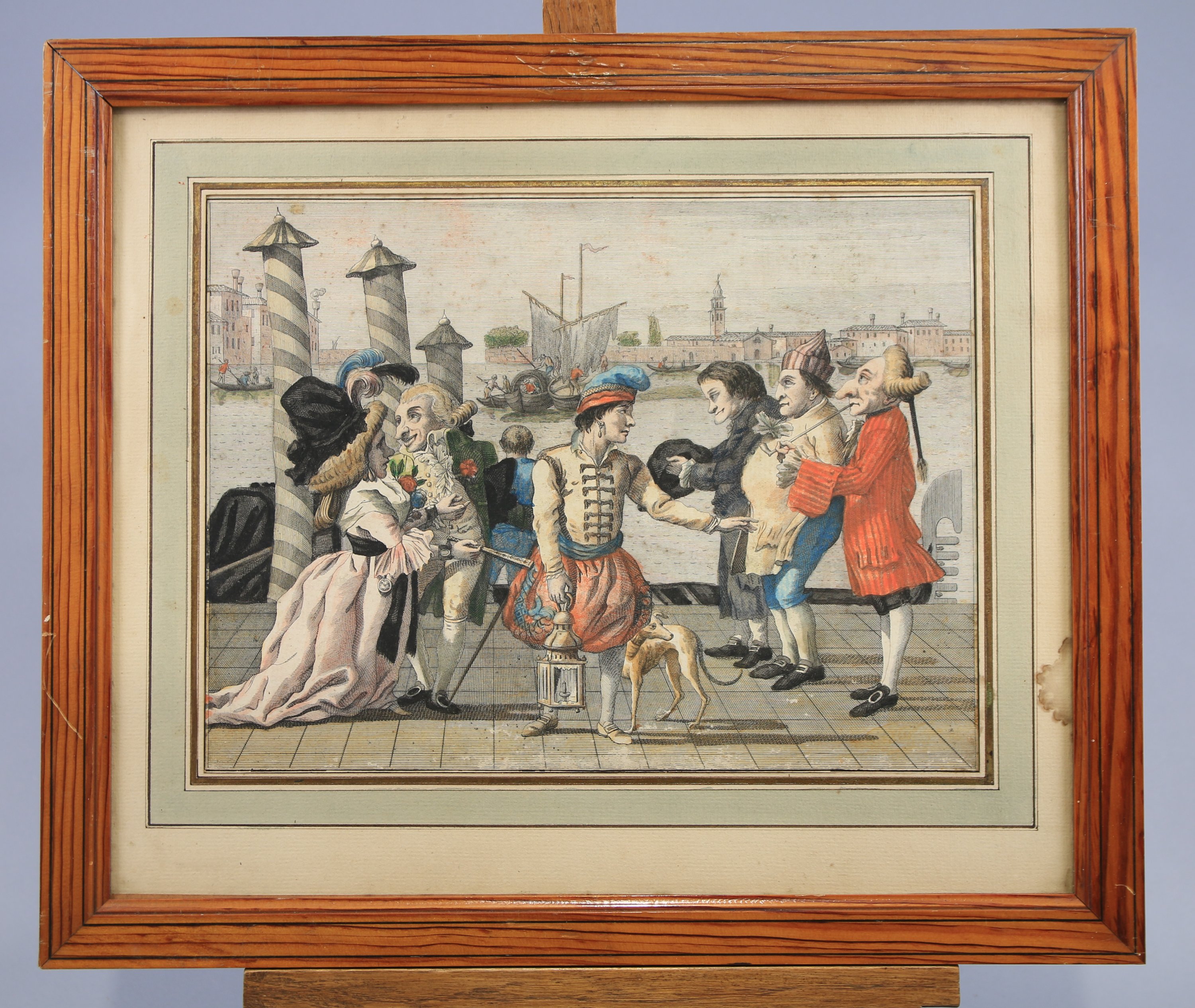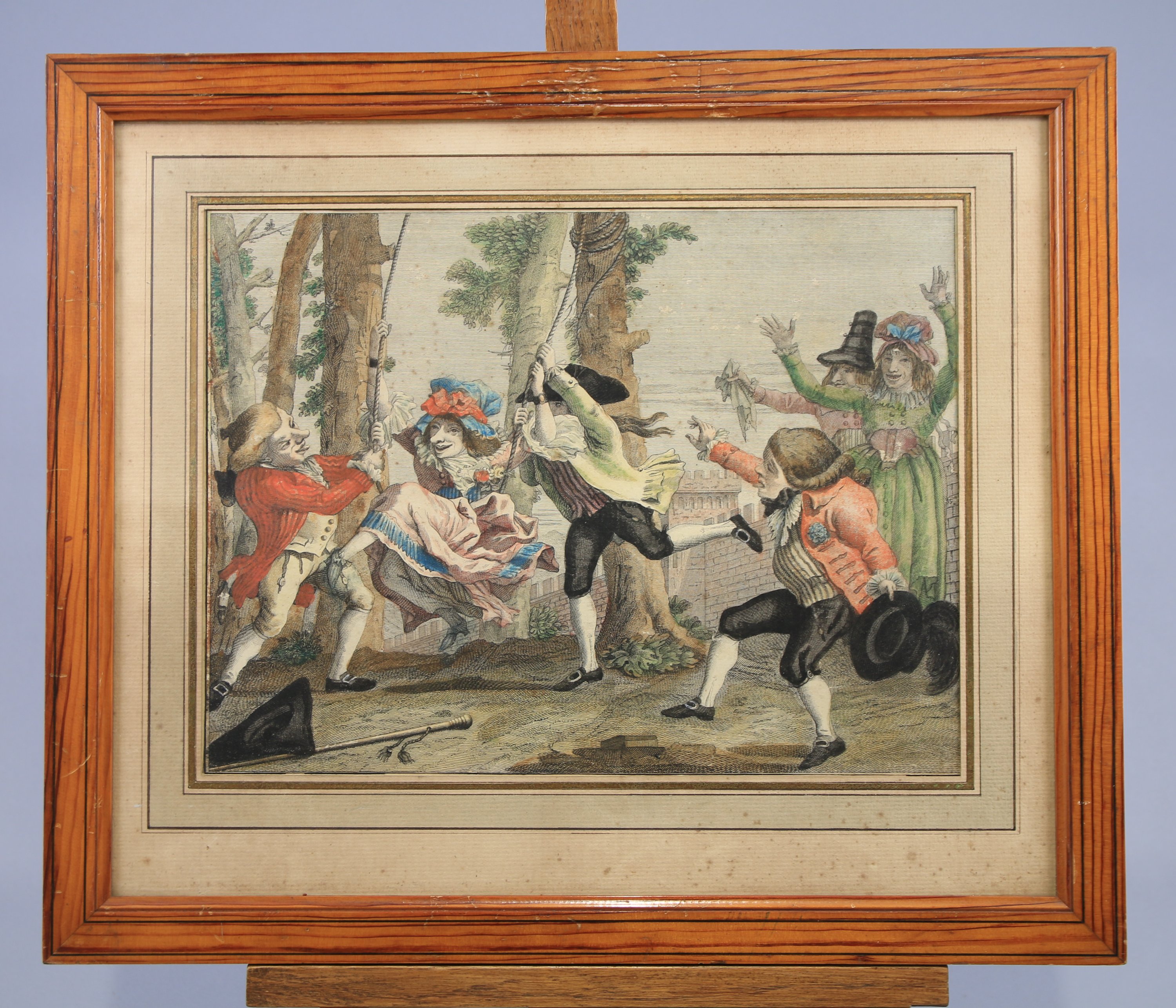 Joints: Ecole du XIXe siècle, "La Trémis Contredanse", eau-forte en couleurs, planche éditée à Londres d'après l'ouvrage de Pierre de La Mésangère. Haut. 19 Larg. 28 cm. Cadre en place (Haut. 36,5 Larg. 48 cm, petits manques).
