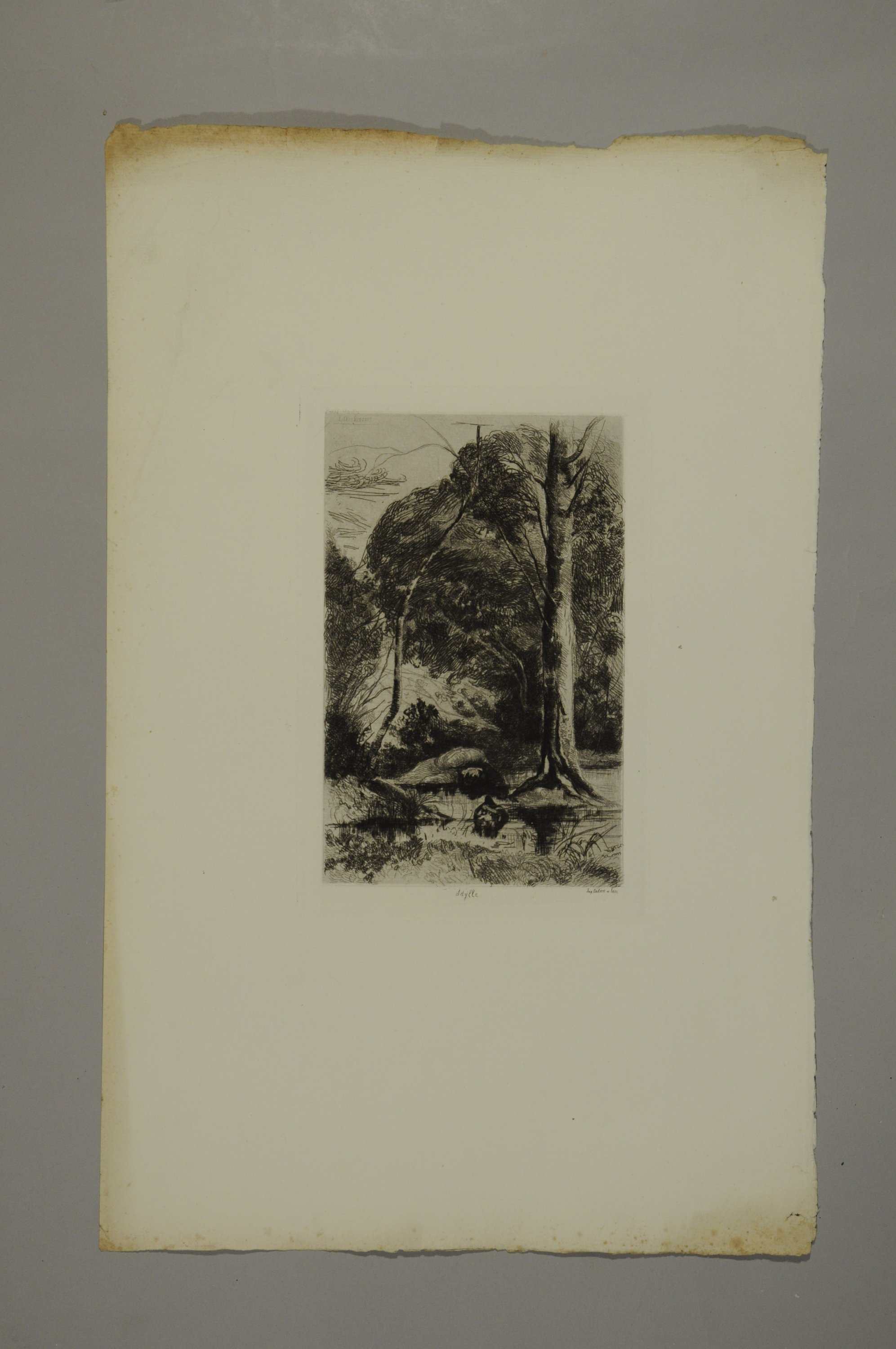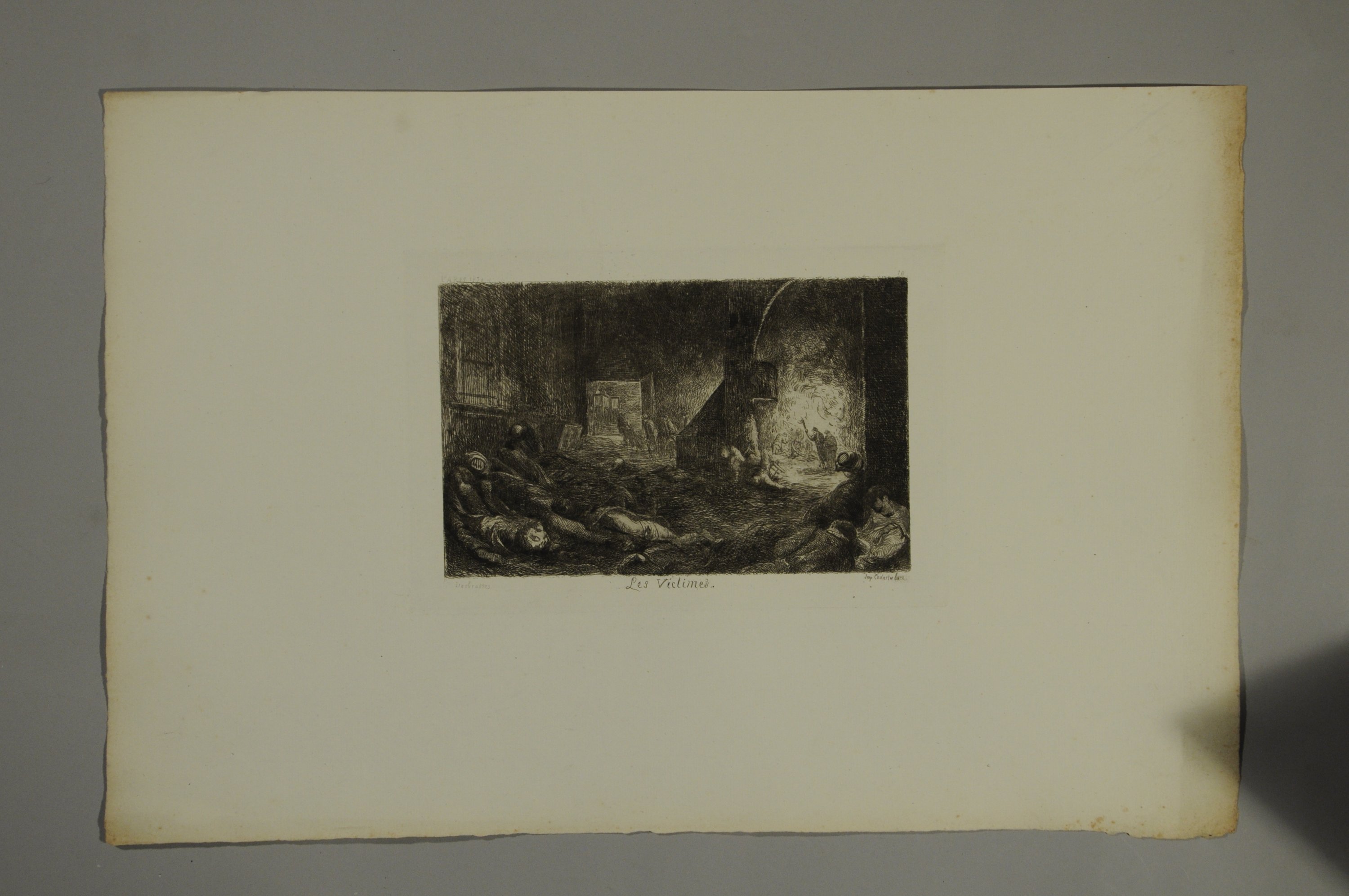 - Léopold Desbrosses (Français, 1821-1908), Intérieur d'étable à Septeuil. Eau-forte signée dans la planche. 48 x 31 cm.