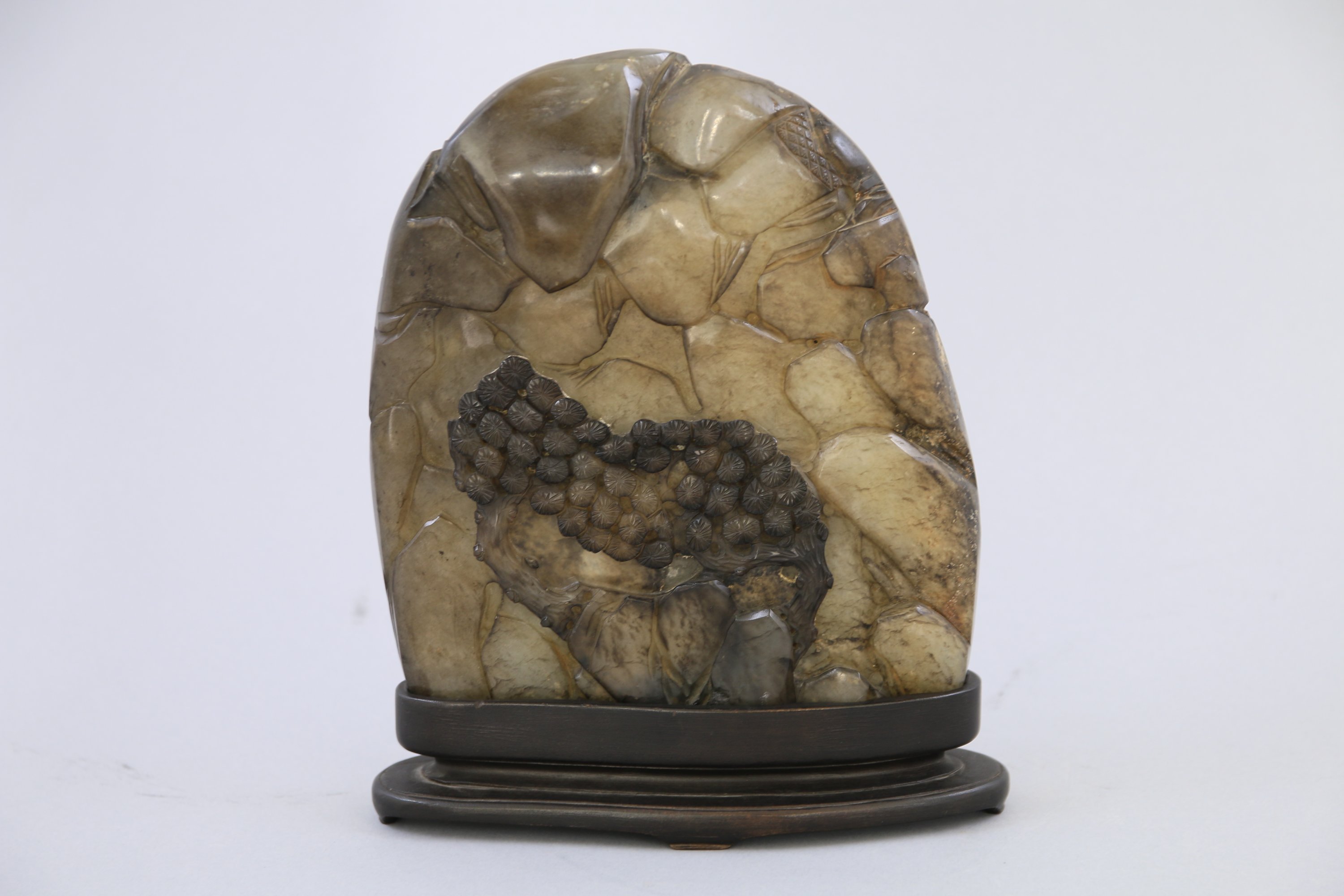 Sur son socle en bois sculpté, Haut. totale 21,5 cm.