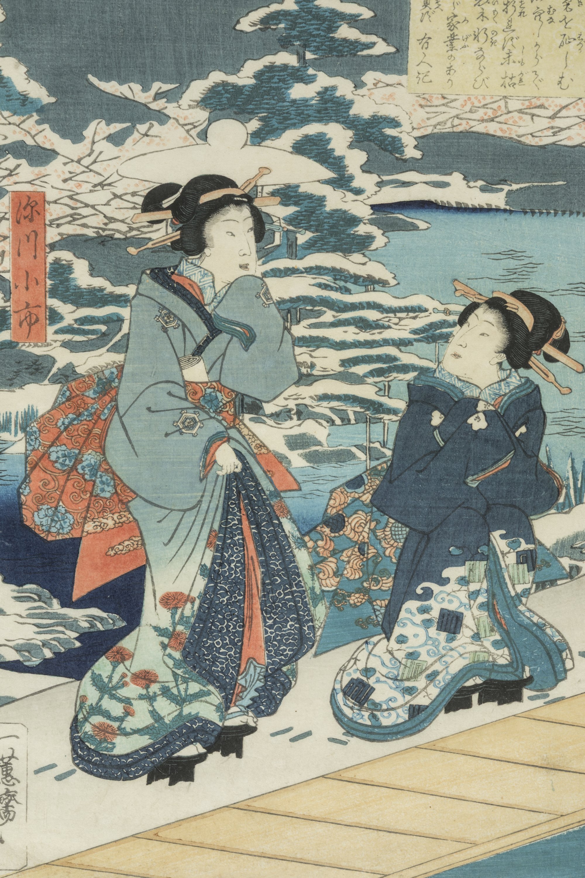 Estampe oban tate-e, de la série Shunshoku sanjûroku kaiseki, les couleurs du printemps aux trente-six restaurants, planche Fukagawayama Matsushigedô, le restaurant Matsushigedô à Fukagawayama.