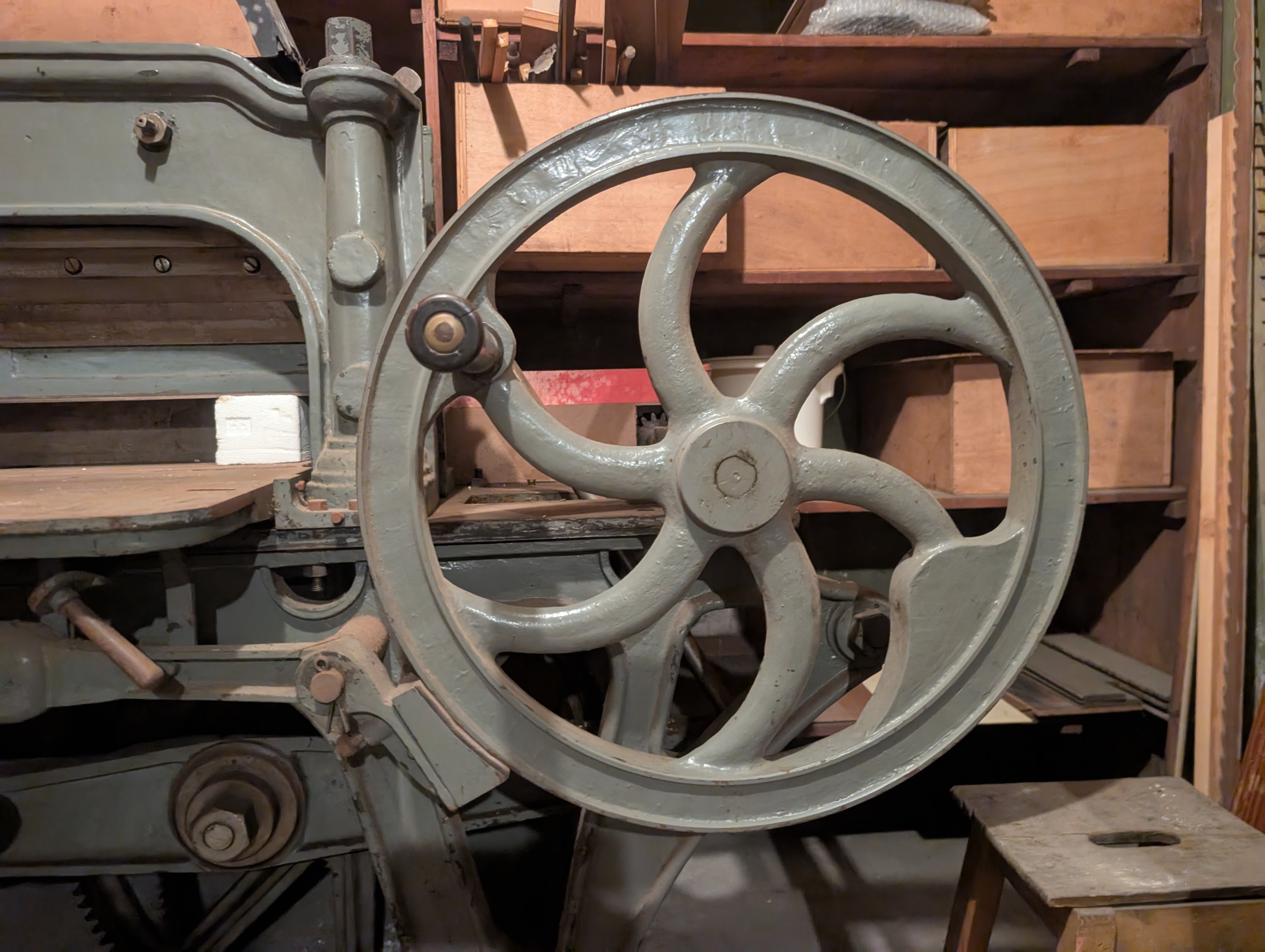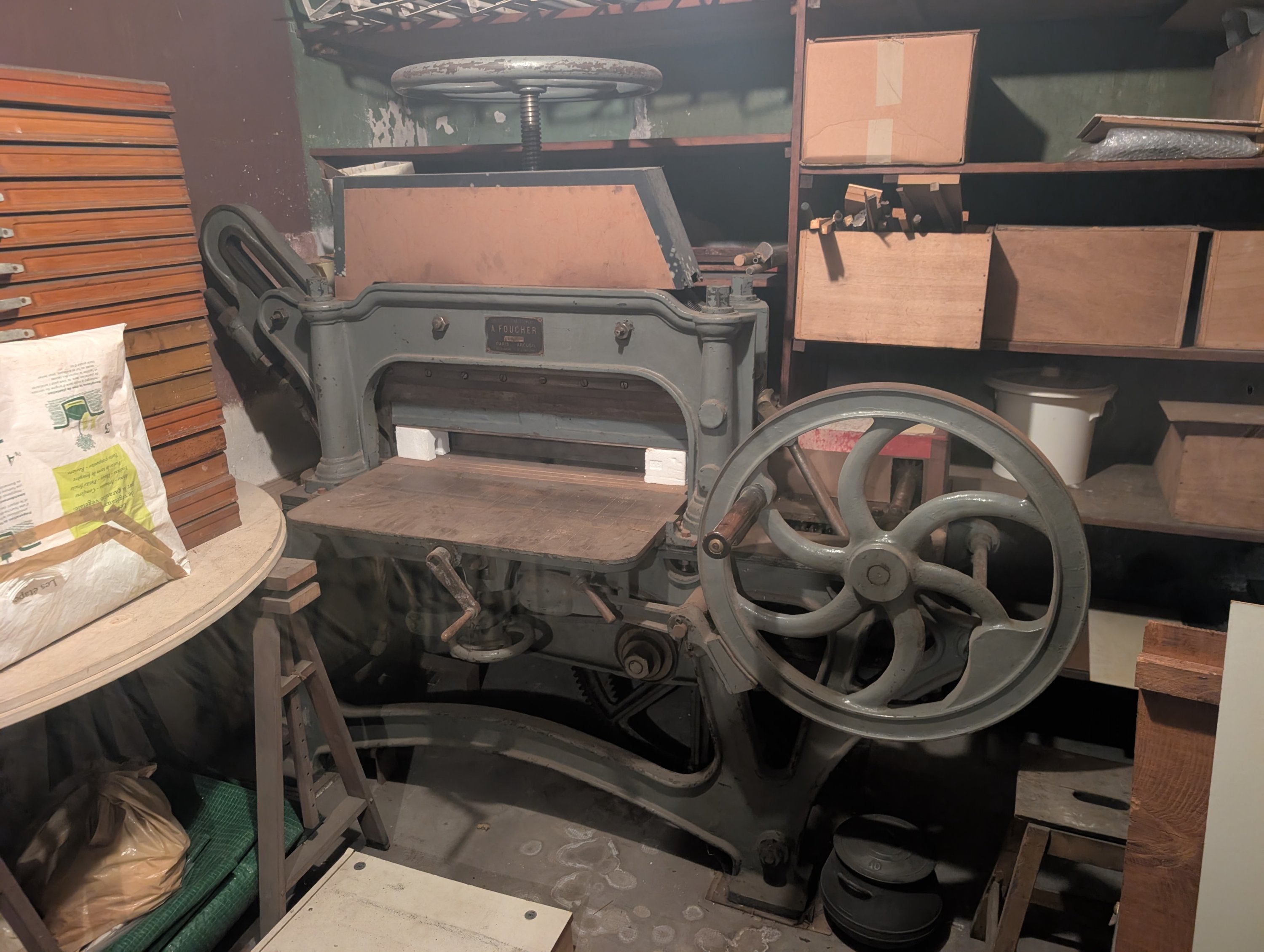 Fonte de fer des établissements A. Foucher, n° 56 148, ouverture lame 80 cm. Mise au point et marge au taquet manuelles, ainsi que la coupe.