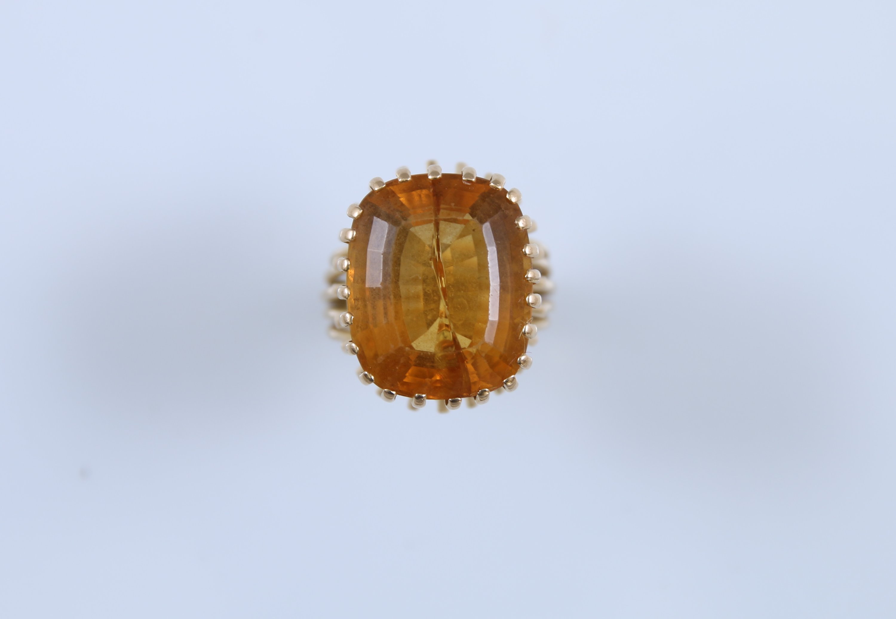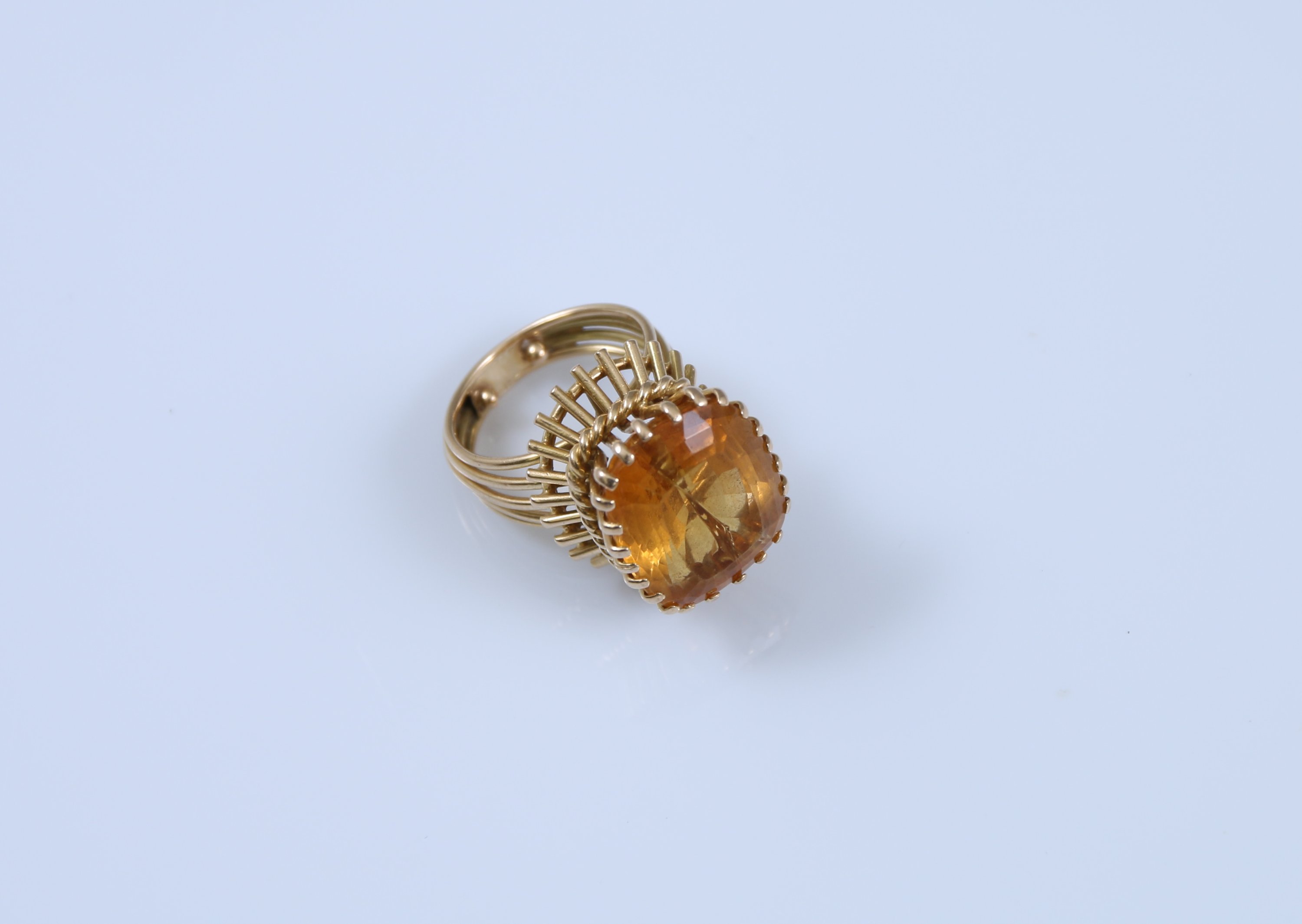 Or jaune 750 millièmes sertie en griffes d'une importante citrine.