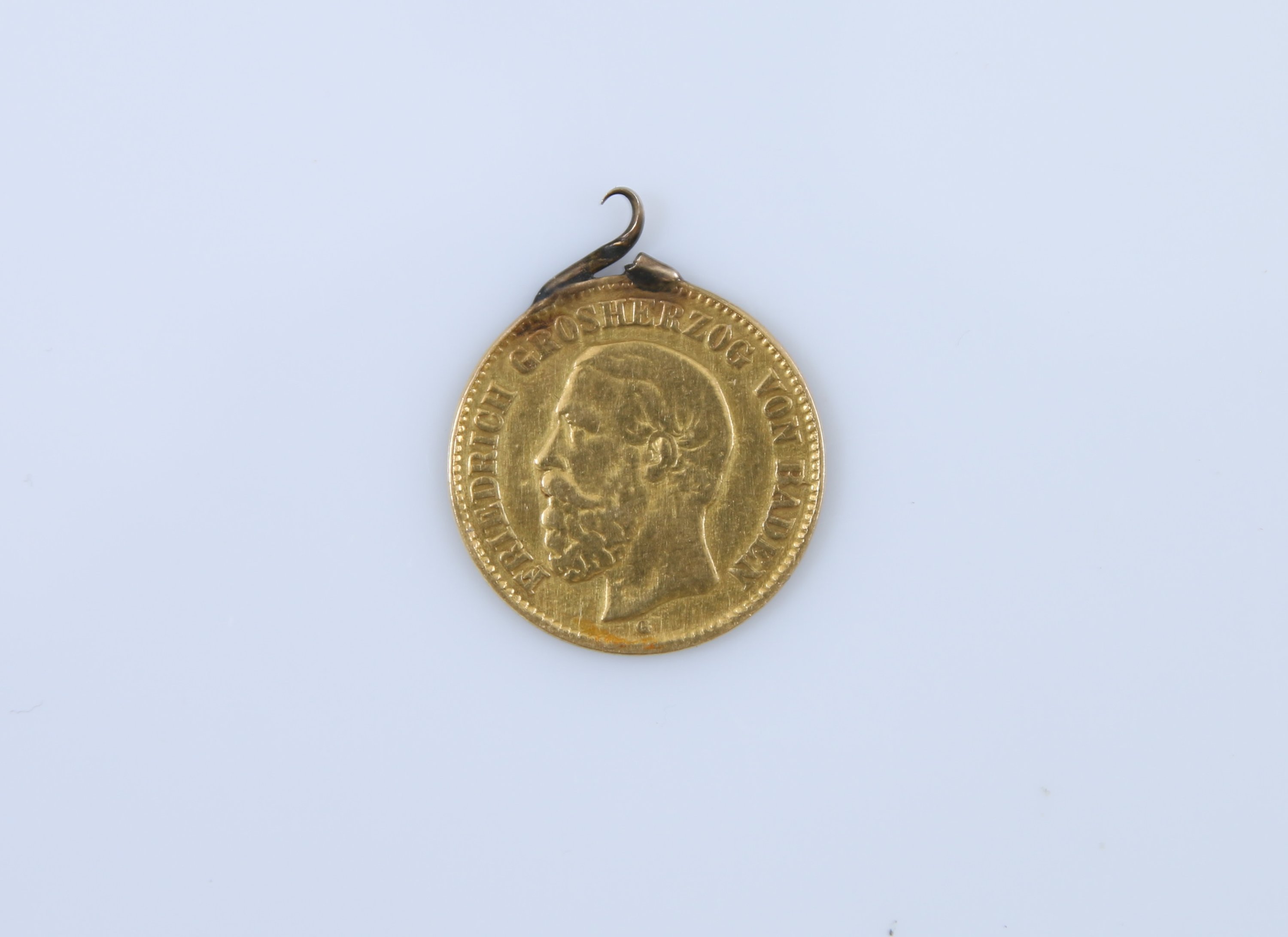 Monté d'une pièce allemande en or de 5 mark.