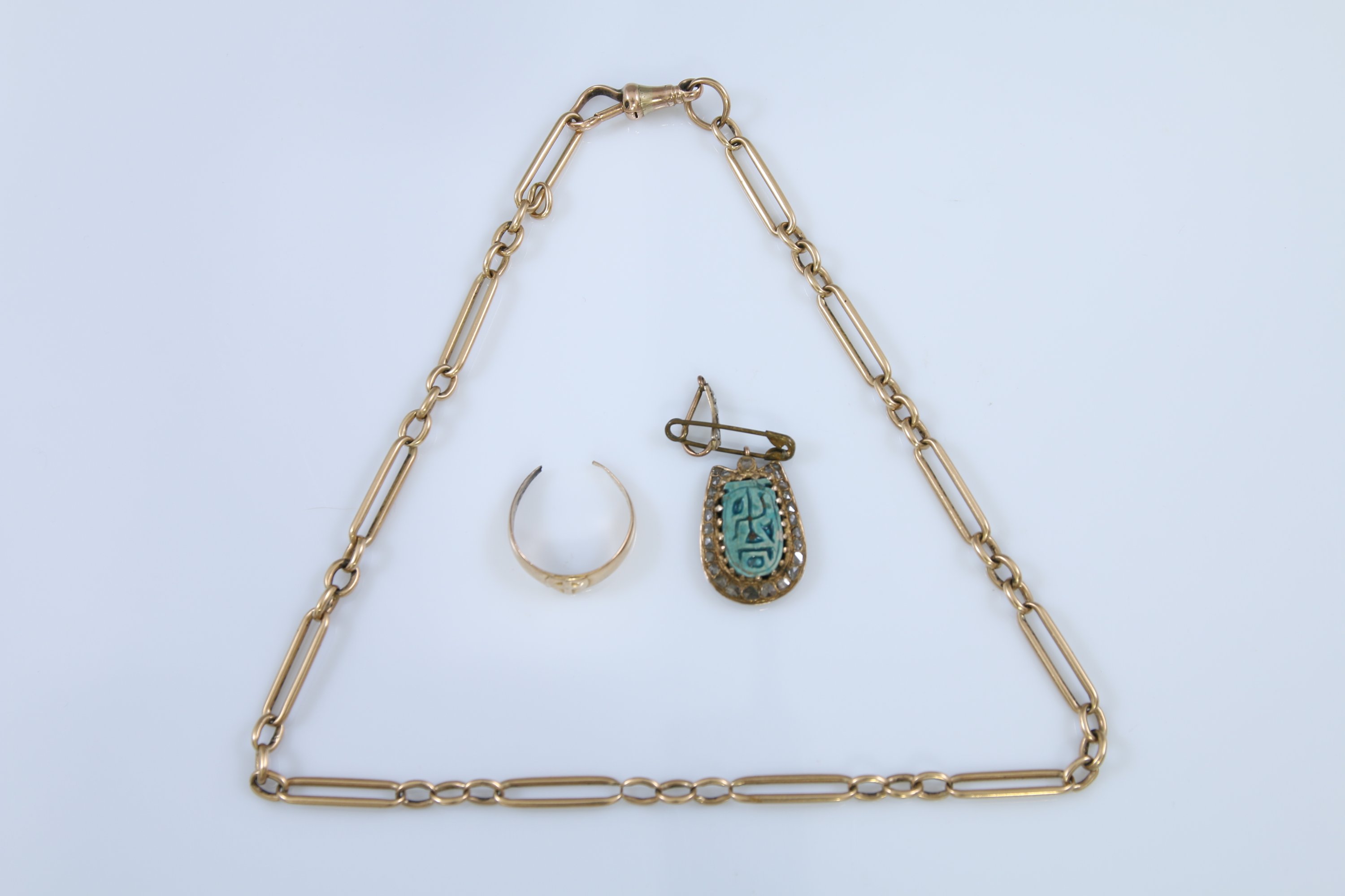 Comprenant un médaillon dans le goût de l'Egypte, une chaine à maille cheval et un élément.