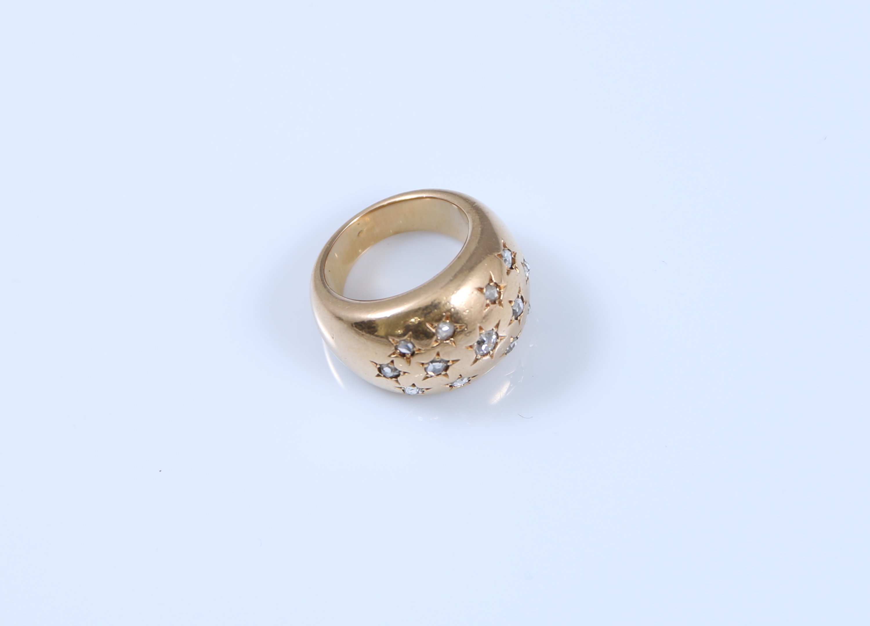 Or jaune 750 millièmes sertie de diamants sur fond d'étoiles.