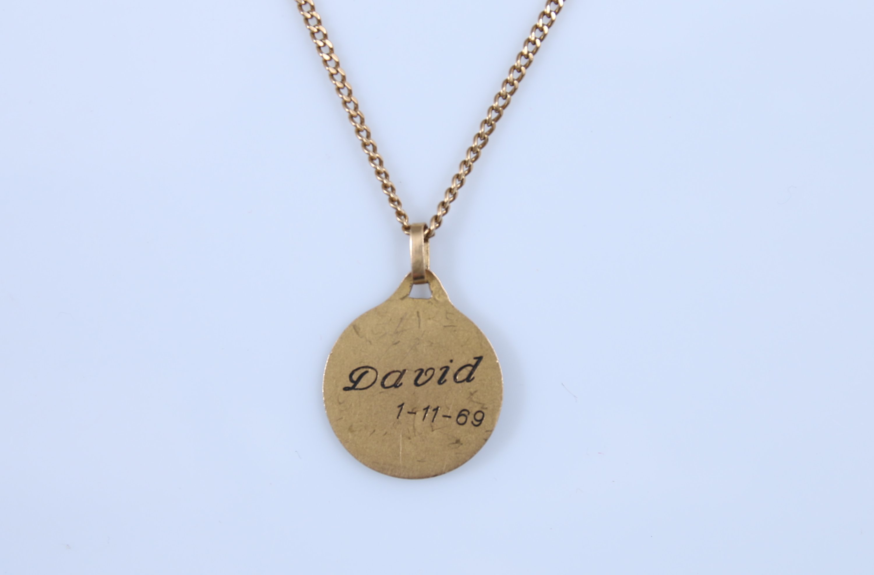La chaîne à mailles gourmettes. La médaille gravée "David / 1-11-69".