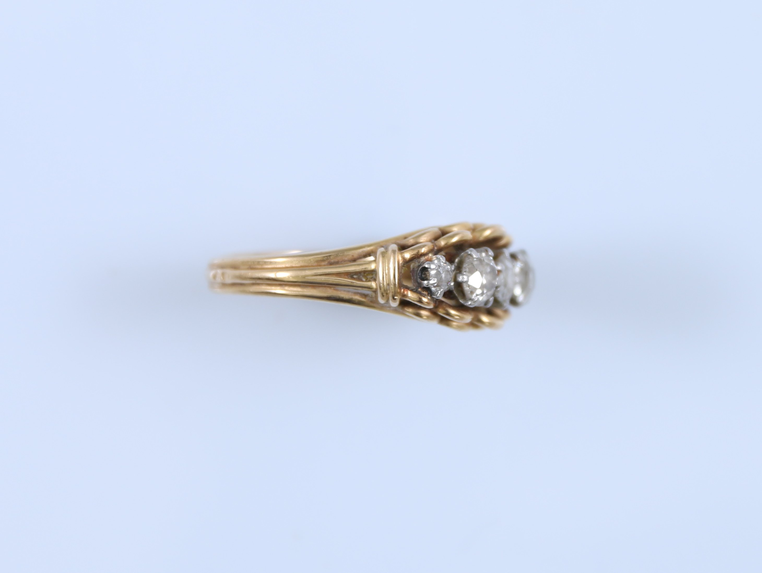 Or jaune 750 millièmes ornée de cinq diamant de taille ancienne en ligne.