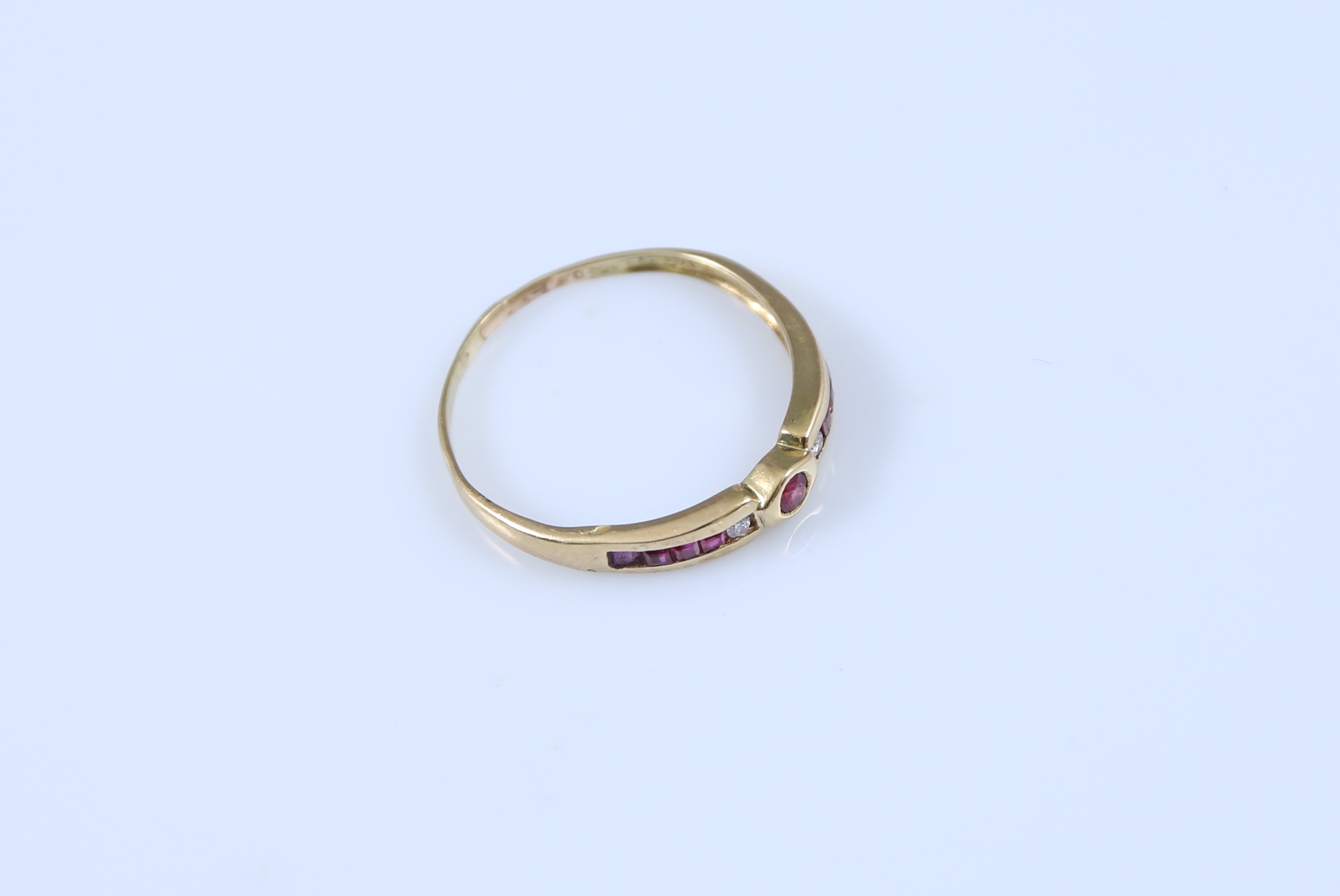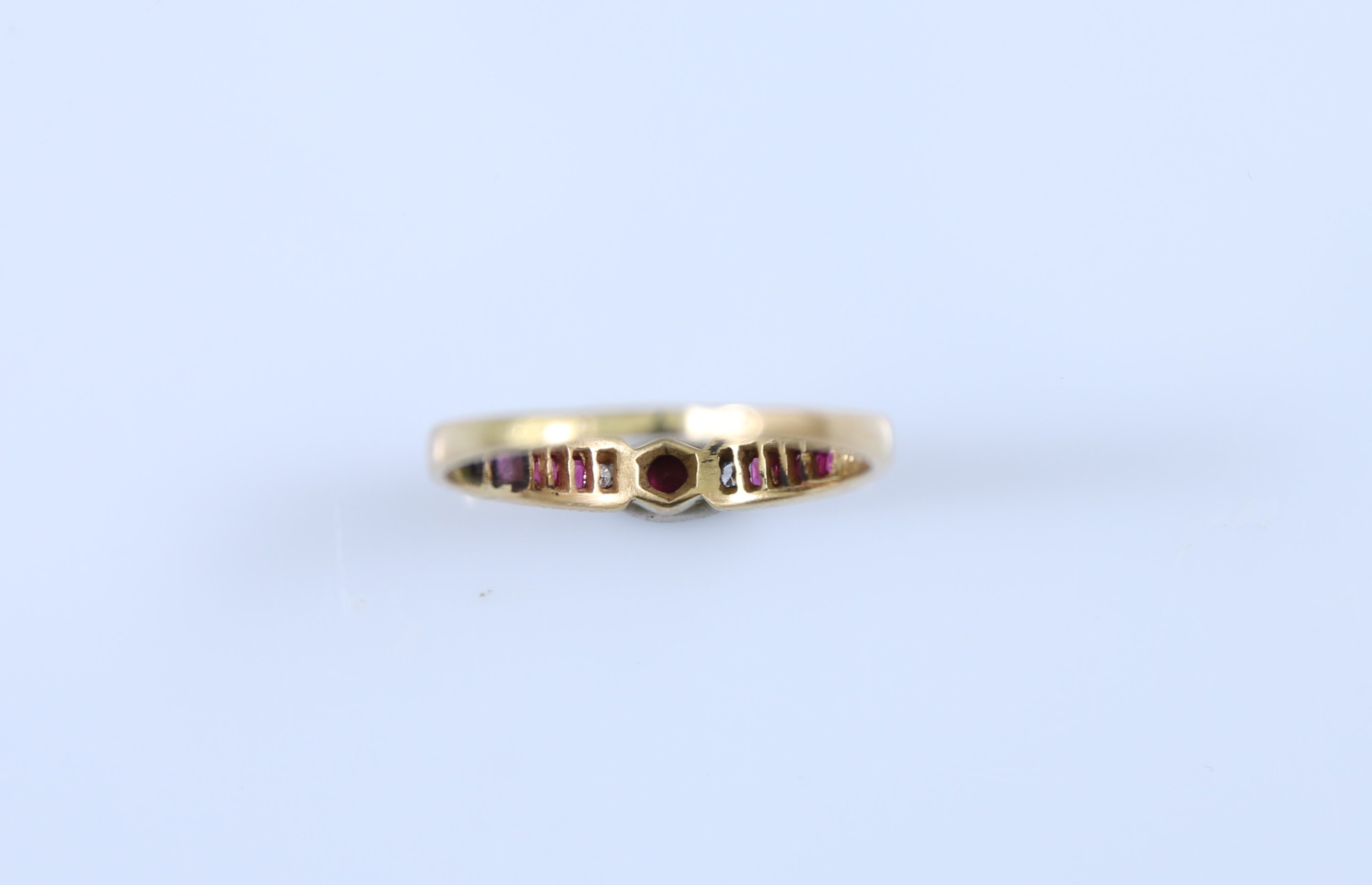 Or jaune 750 millièmes, sertie de rubis et diamants.