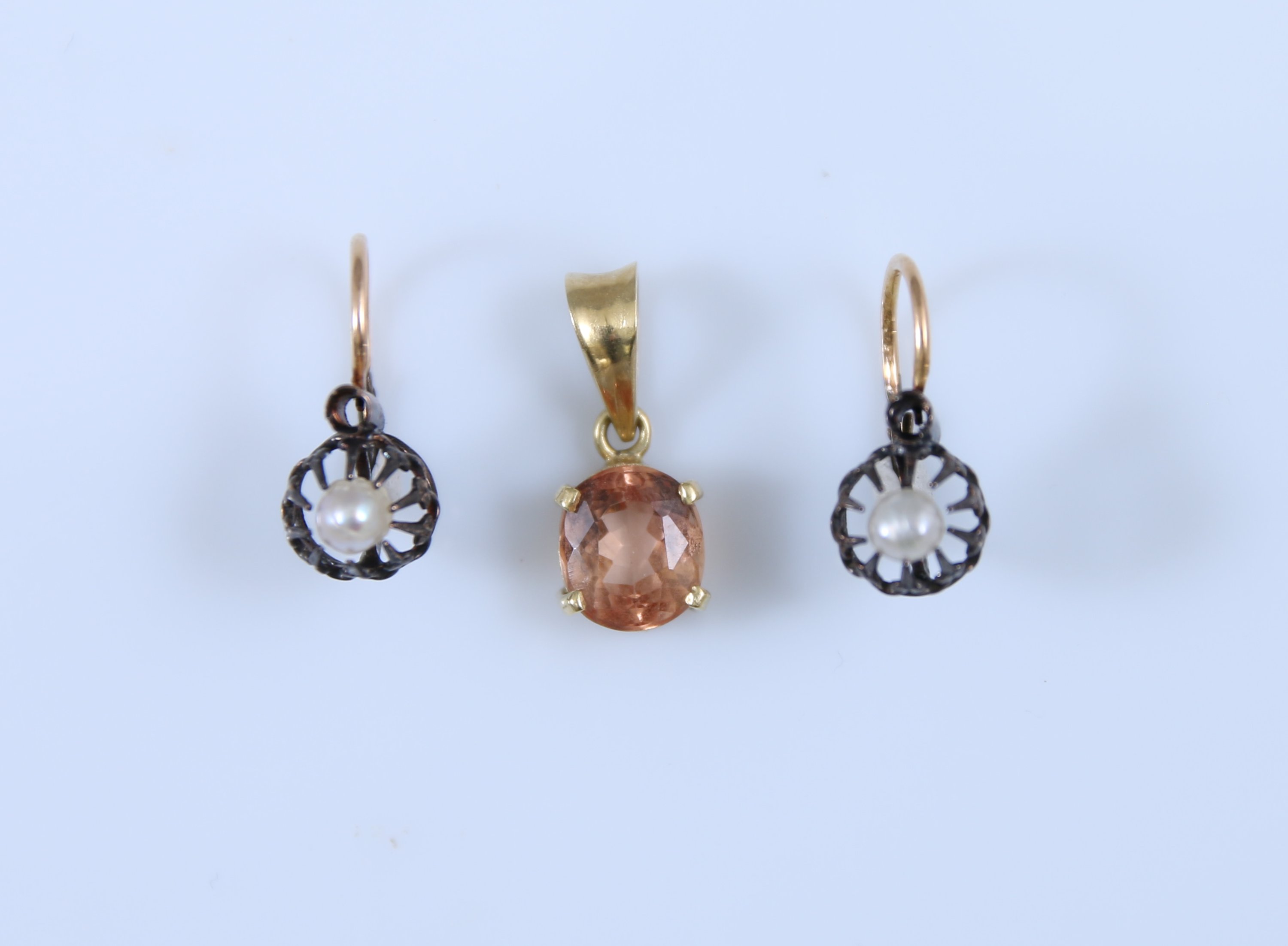 - Un pendentif en or jaune serti d'une pierre rose. Poids brut: 1,1 g.
