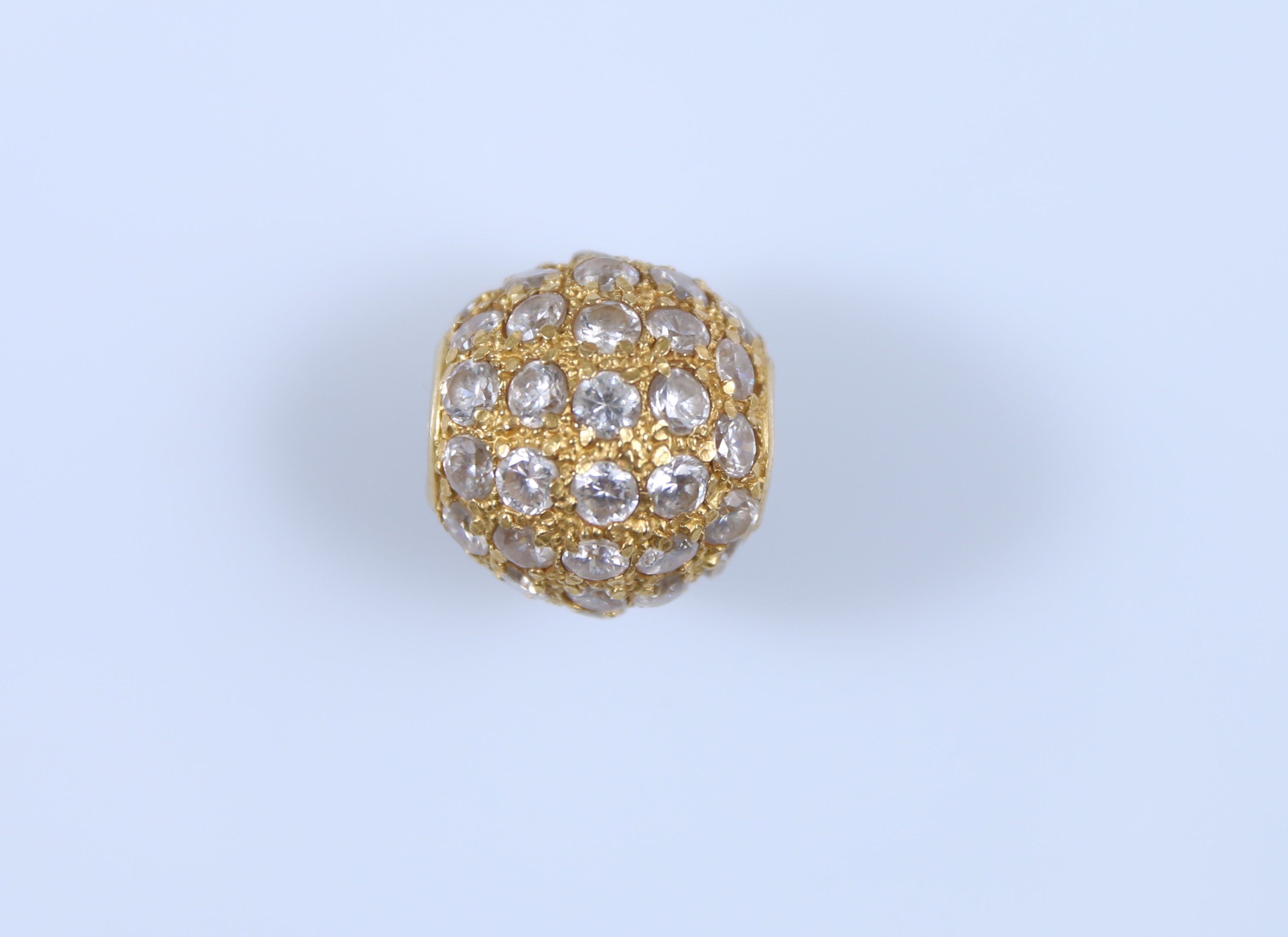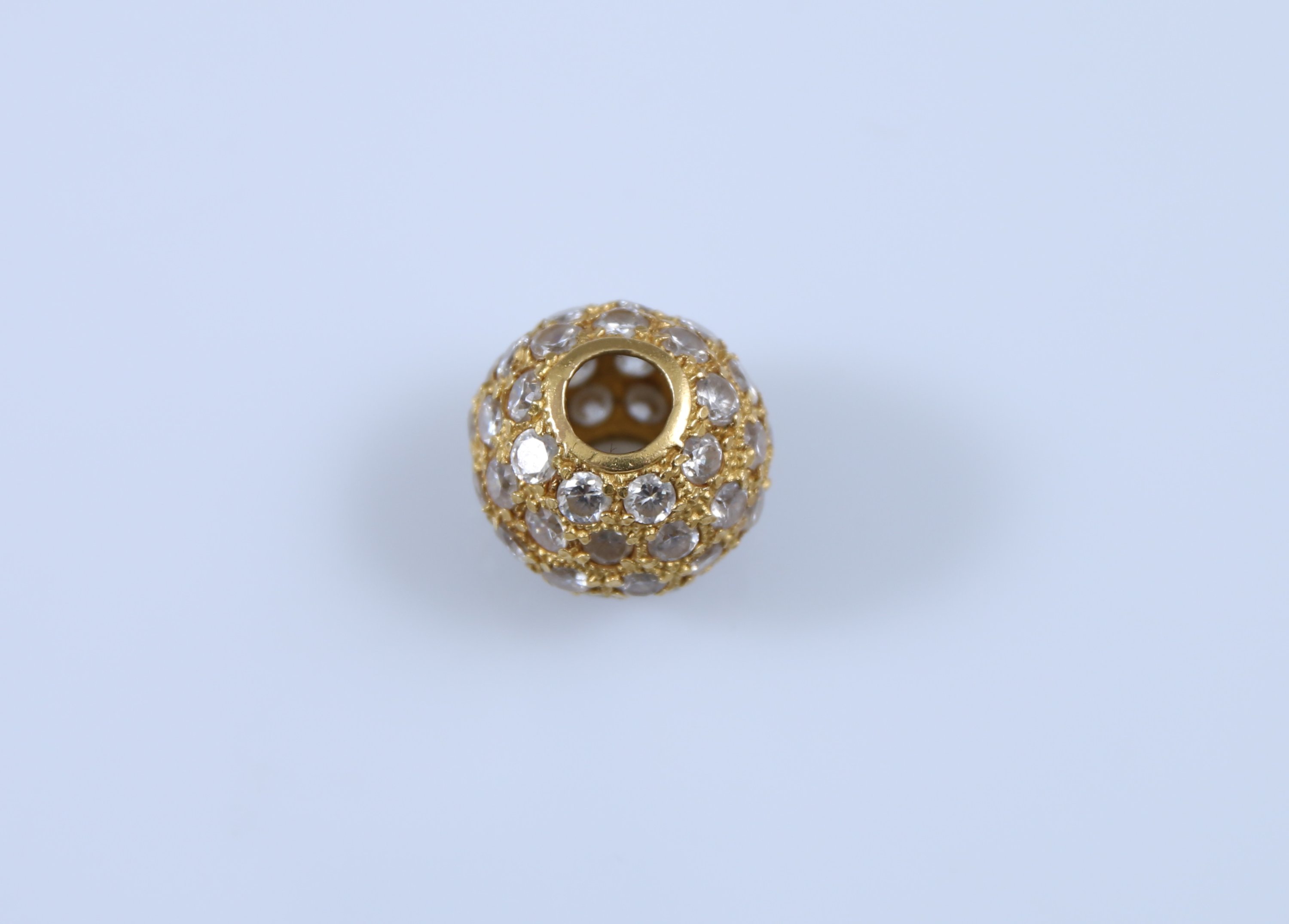 La chaine à mailles forçat retenant un pendentif boule serti de pierres blanches.