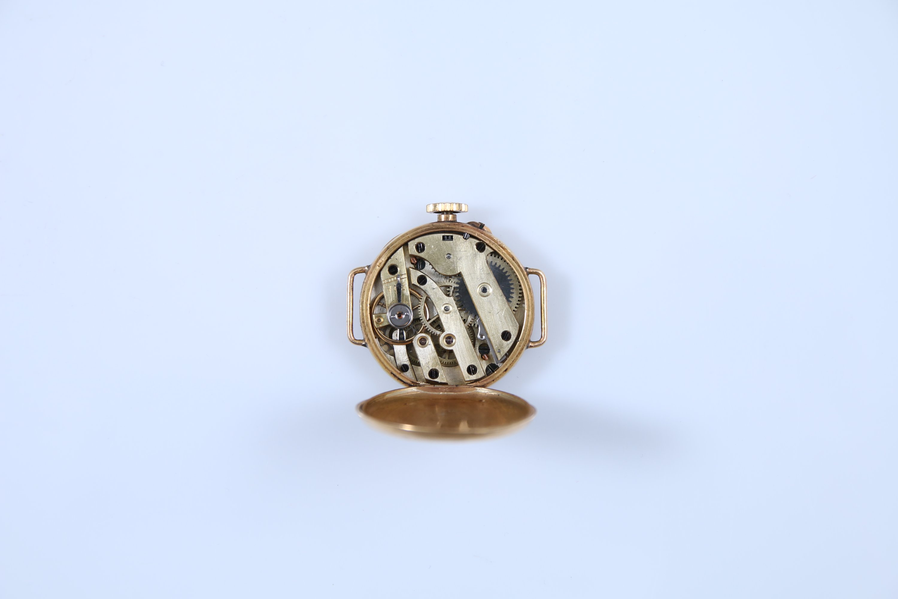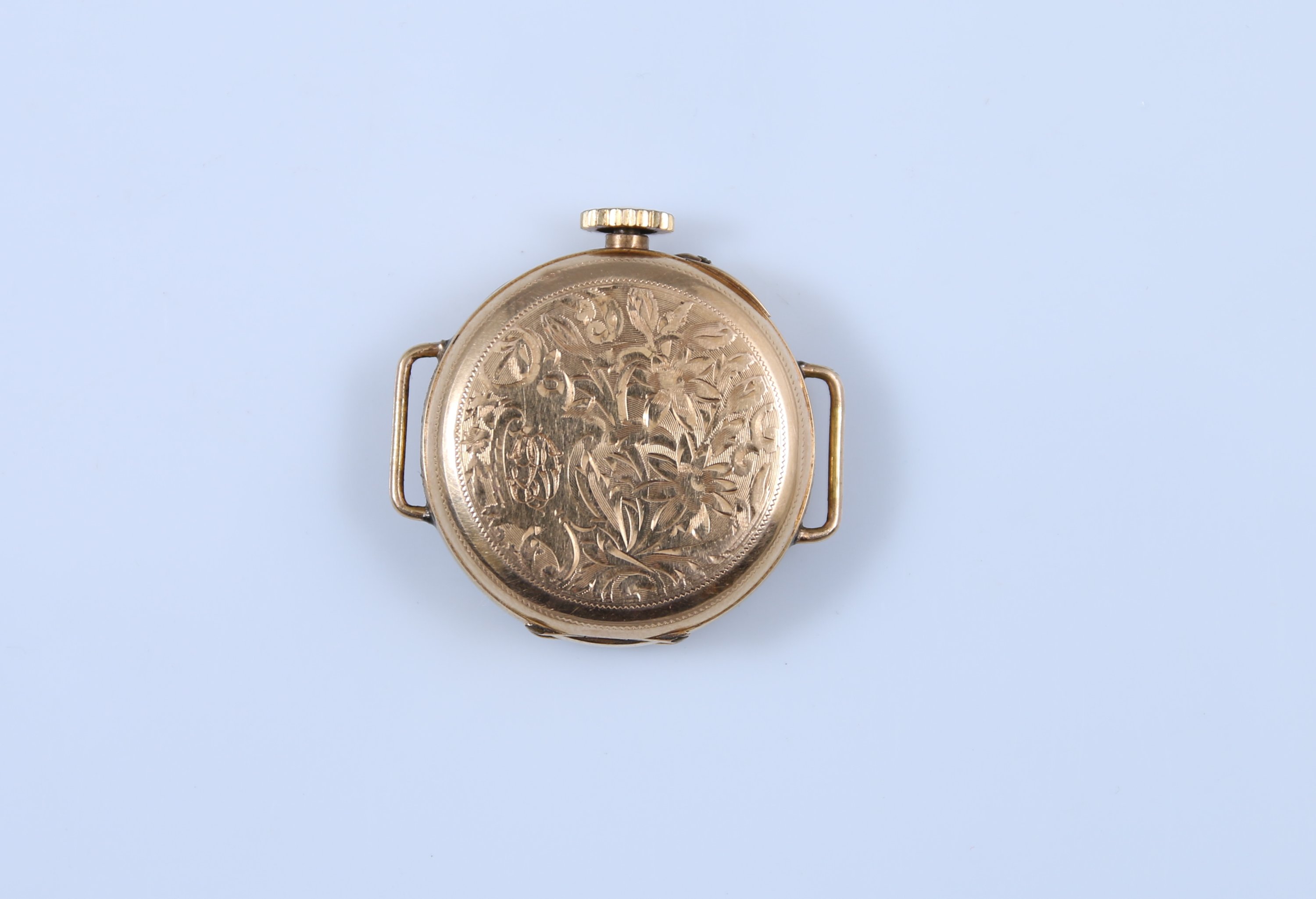 Le cadran blanc indiquant les heures en chiffres romains, les minutes par un chemin de fer. Rever du boitier à décor gravé d'un couple d'oiseaux dans un entourage végétal. Cache-poussière intérieur en or jaune 750 millièmes.