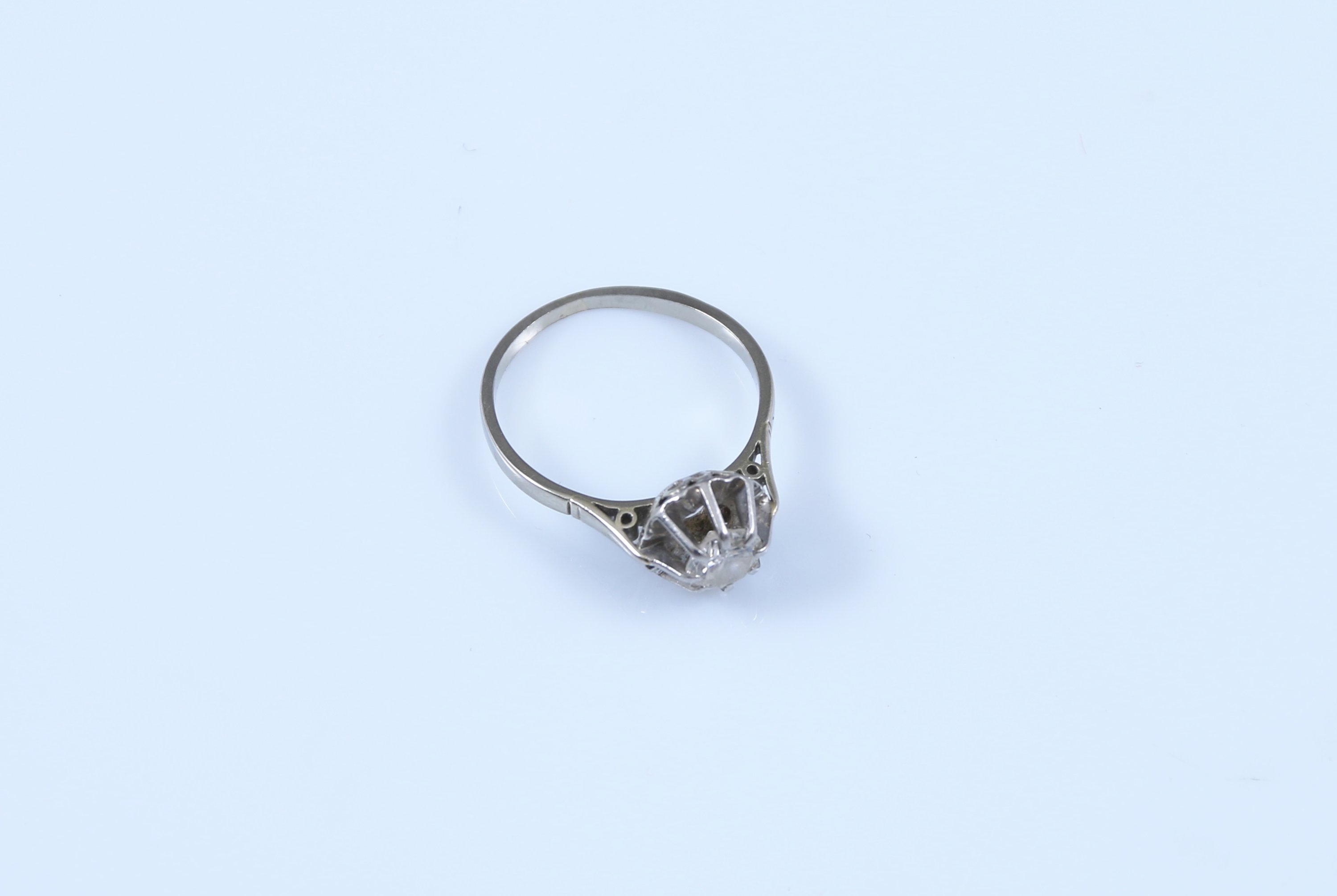 Or blanc 750 millième et platine sertie d'un diamant de taille brillant d'environ 0,4 ct.