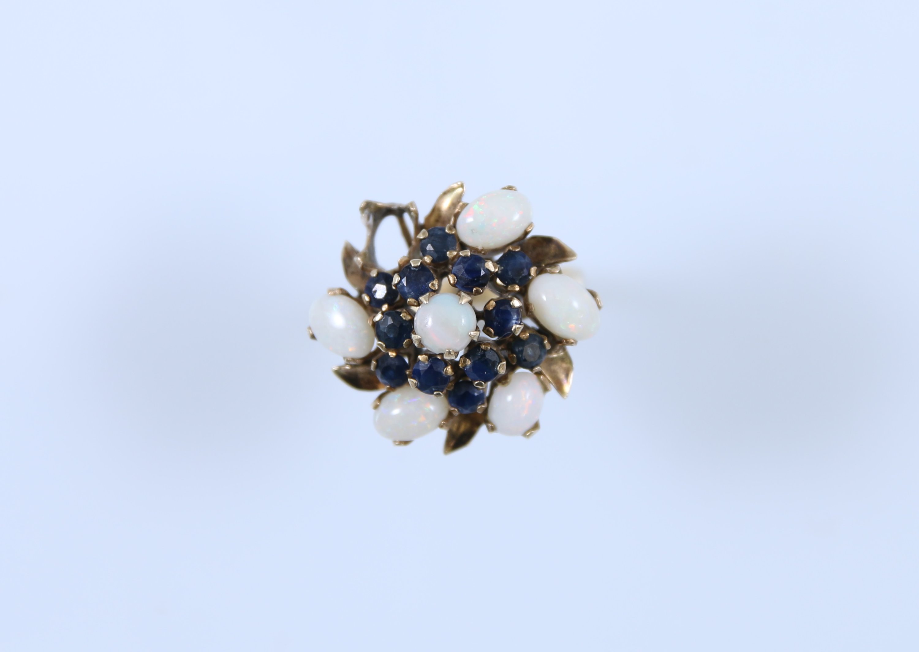 Or jaune 585 millièmes sertie en griffes de six opales et saphirs.
