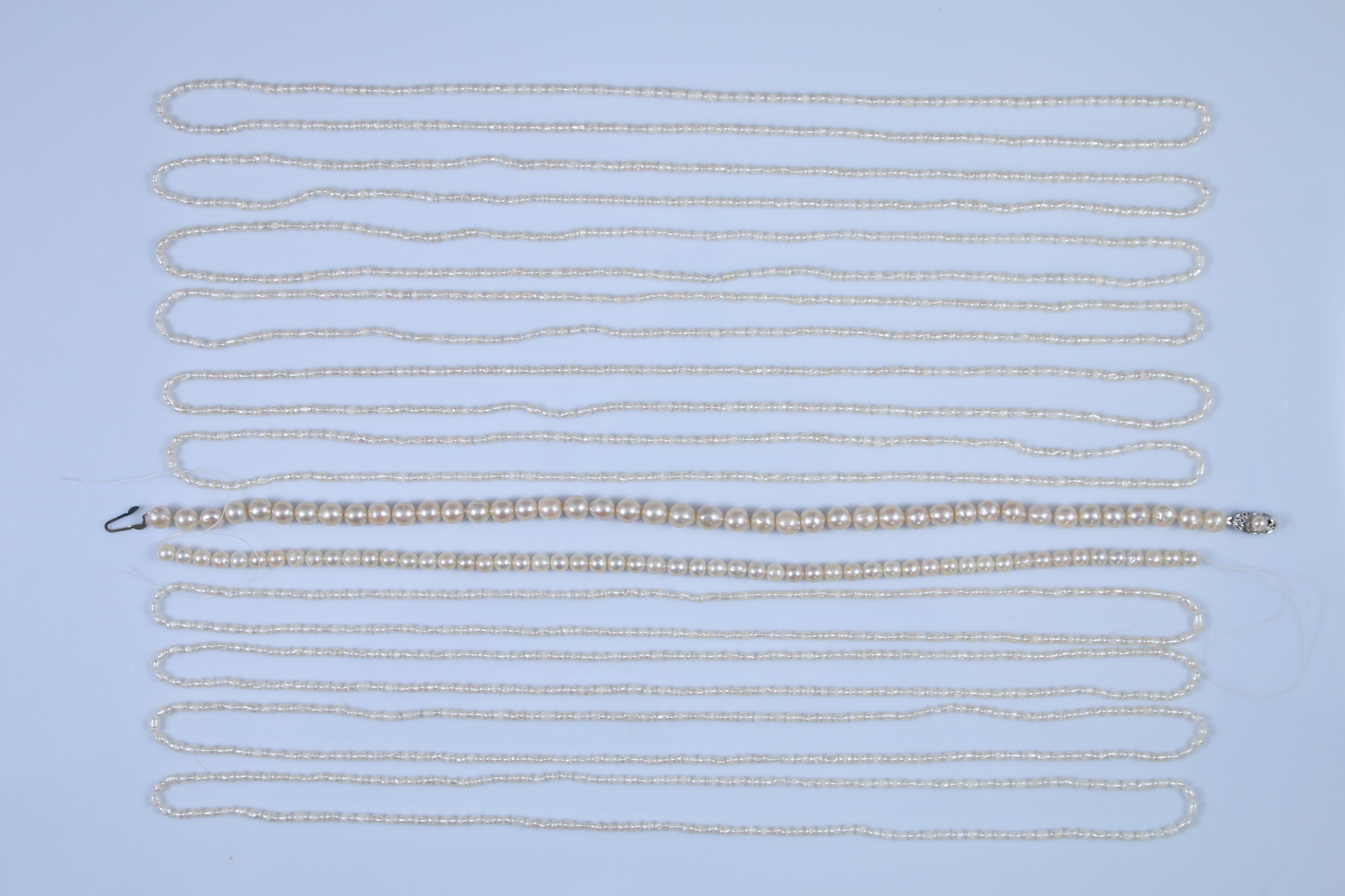 - Un collier de perles de culture, le fermoir en argent 800 millièmes. Poids brut: 50,3 g. ;